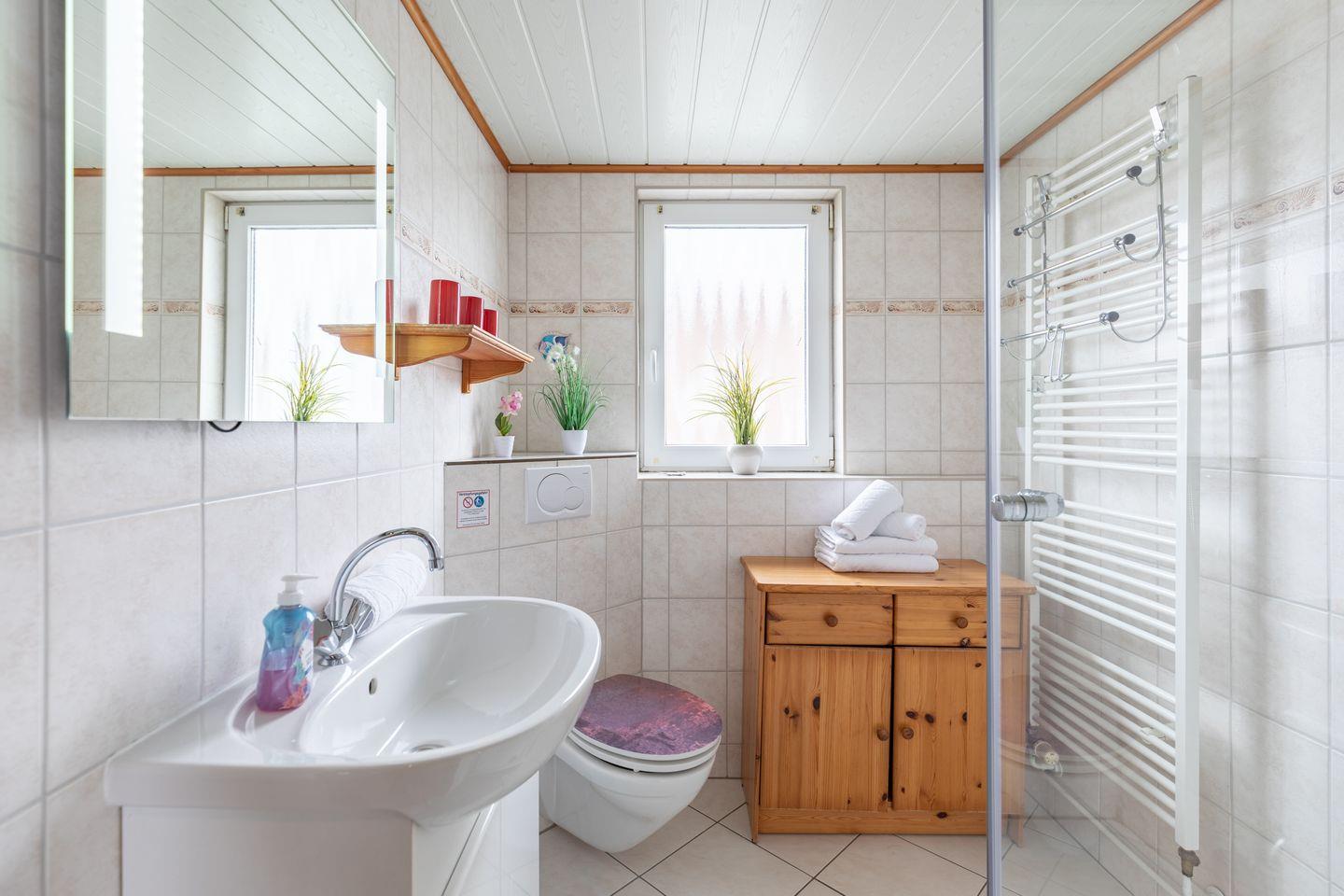 Die Ferienwohnung befindet sich direkt am Badedeich im 1. Obergeschoss des familiär betriebenen Hauses "Seeblick".