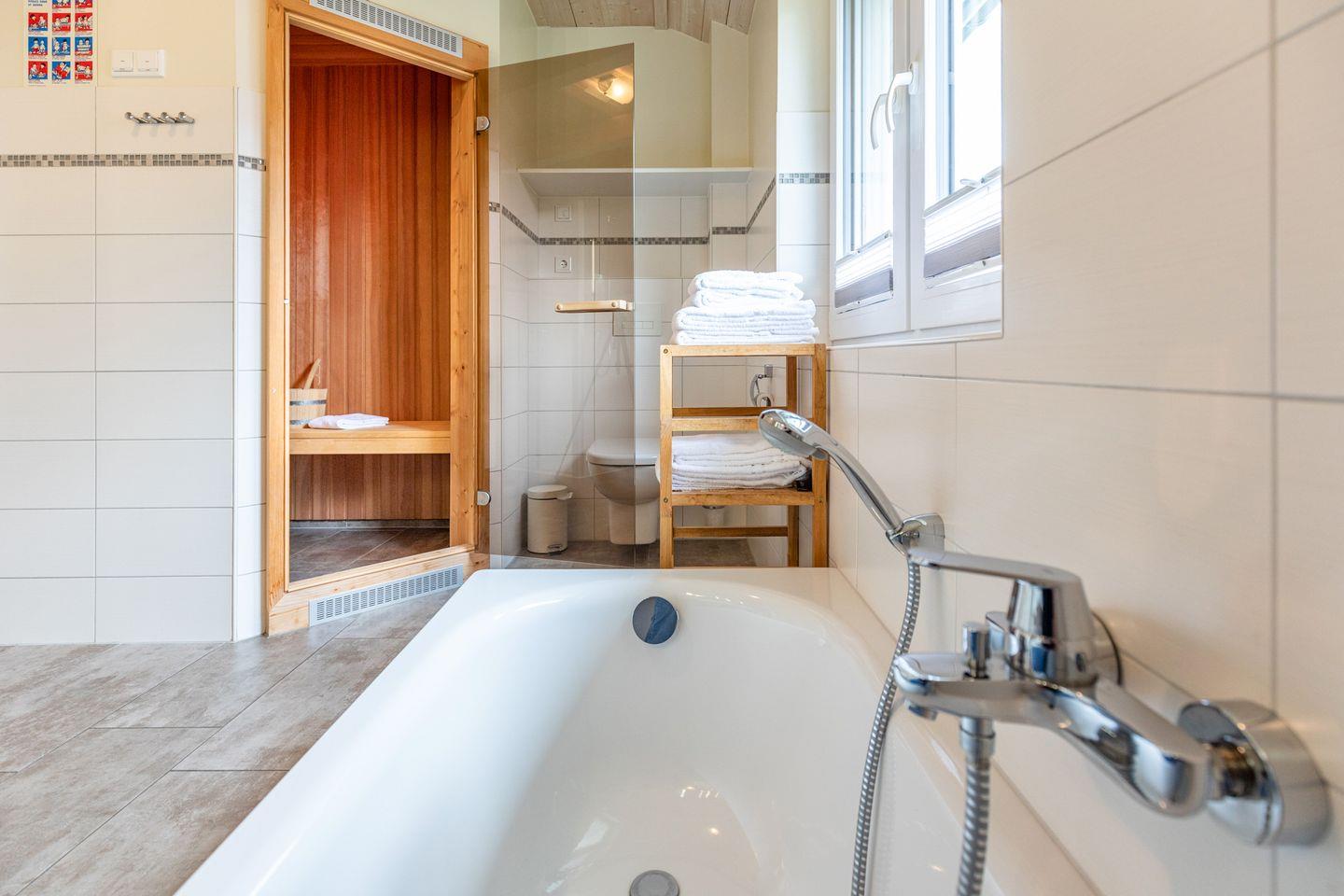 Das gemütliche Wohnzimmer ist mit einem SAT-TV ausgestattet. Der Kaminofen sorgt auch in der kälteren Jahreszeit für behagliche Stunden. Die offene Küche bietet Ihnen eine exklusive und umfangreiche Ausstattung, die das Herz eines jeden Hobbykochs höher schlagen lässt: Ceranfeld mit 4 Kochplatten, Backofen, Kühlschrank mit ***Gefrierfach, Mikrowelle, Geschirrspüler, Filterkaffeemaschine uvm. Das Badezimmer lässt keine Wünsche offen: zwei Waschbecken, eine große Badewanne, eine ebenerdige Dusche und eine schöne Sauna geben Ihrem Urlaub den richtigen Rahmen. Das Ferienhaus verfügt über ein zusätzliches WC. Auf der überdachten Terrasse können Sie auf bequemen Gartenstühlen und -liegen die Sonne genießen. In den Monaten von April bis Oktober steht Ihnen zusätzlich ein Strandkorb zur Verfügung.