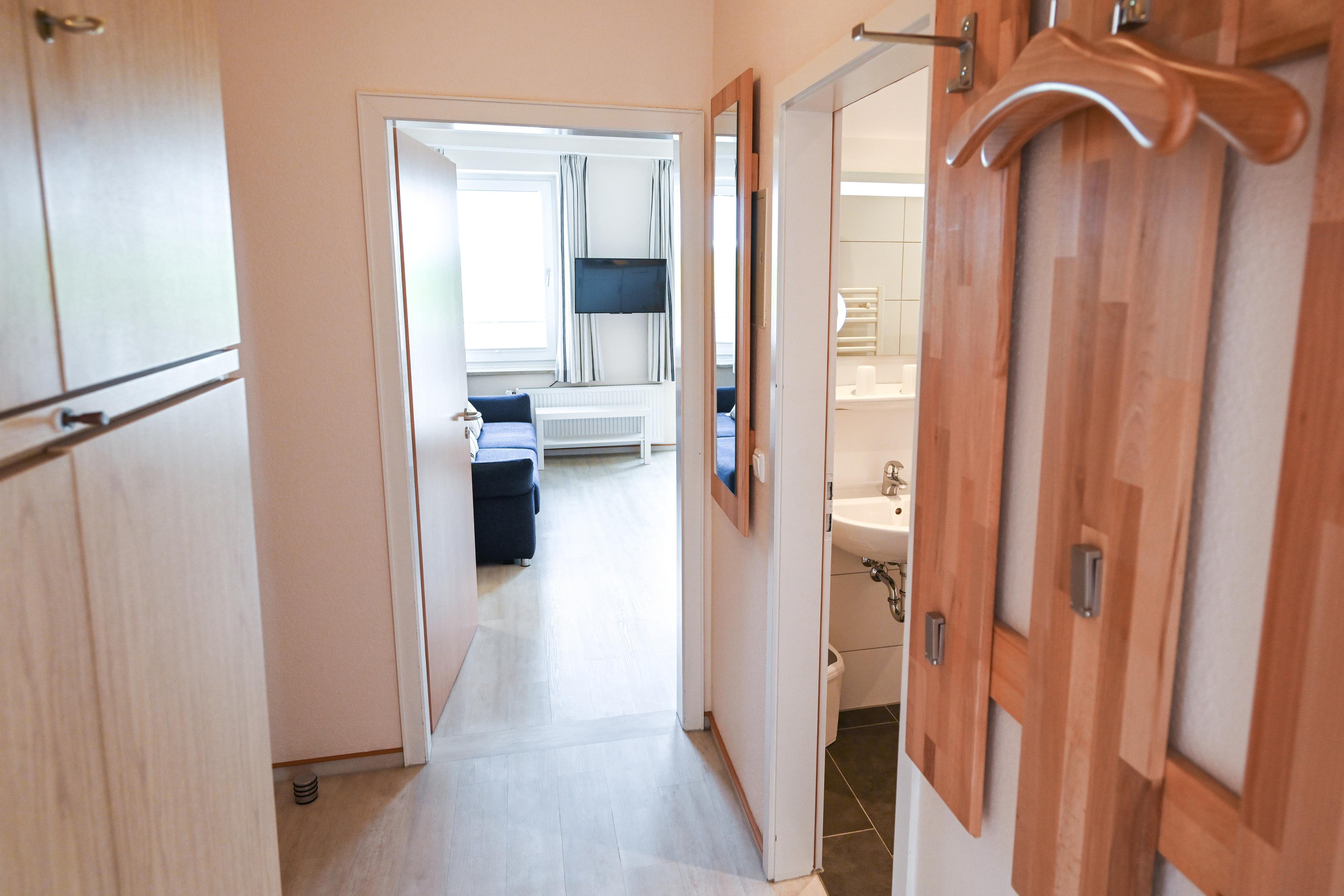Unsere 2-Raum-Ferienwohnung Nr.5 liegt in der Hochpaterre und hat einen Wohnschlafraum, einen Schlafraum, Küche, einen Balkon, Dusche/WC und ist für 2-3 Personen ausgestattet.