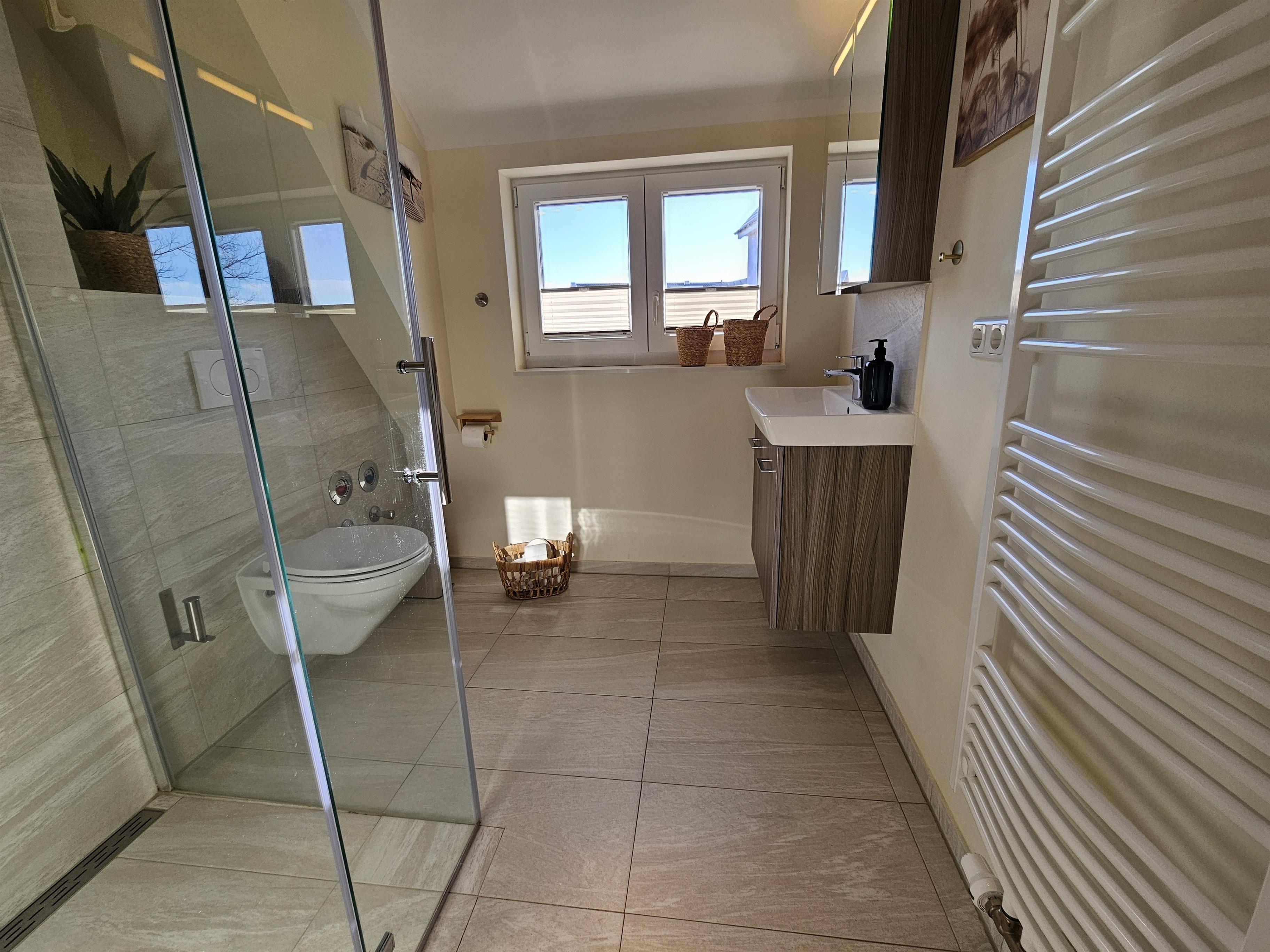 - Ebenerdige Dusche (walk-in) im modernisierten Bad