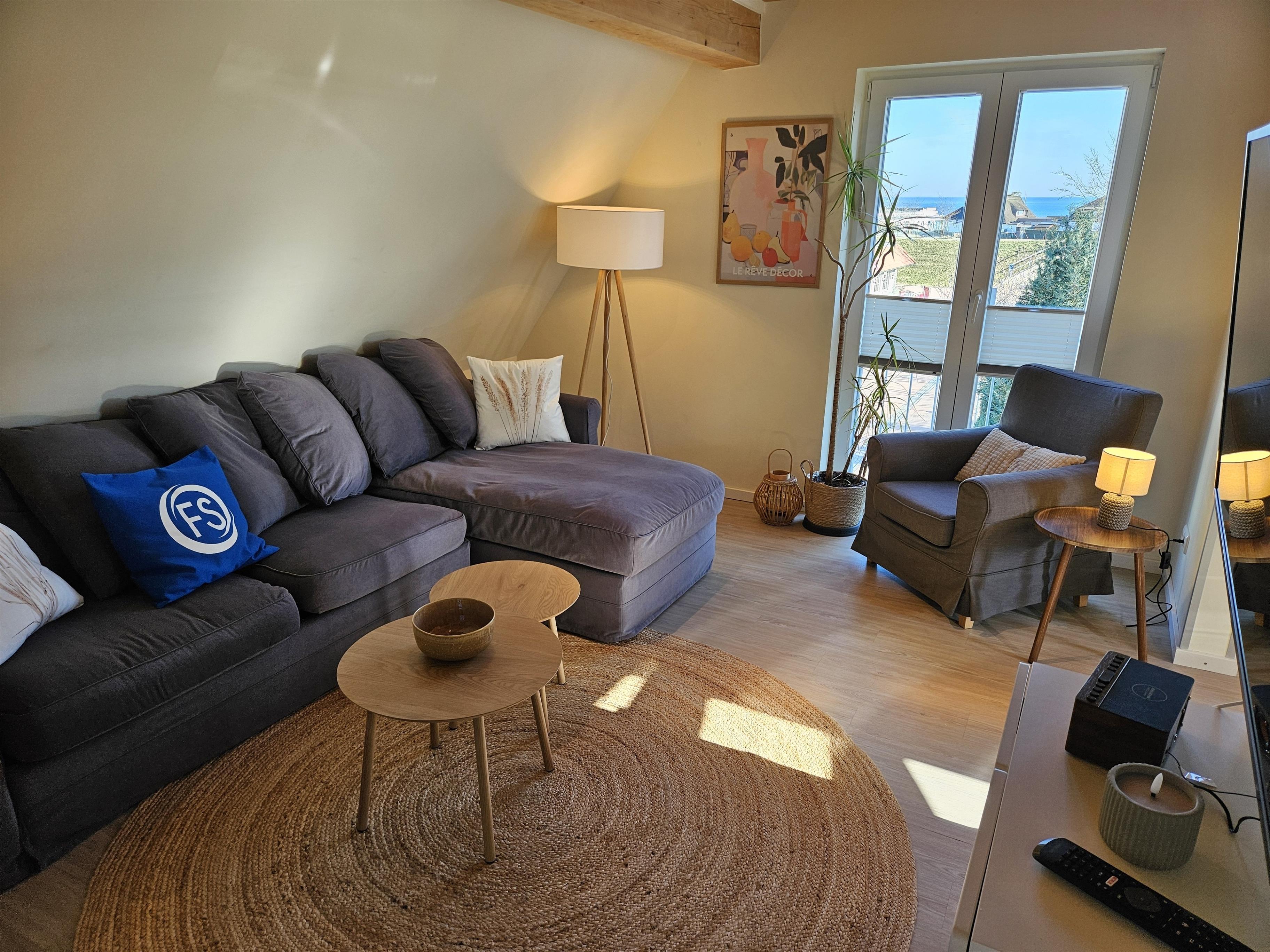 Küstenglück 3: Modernes Maisonette-Appartment mit Meerblick & Kickerspaß