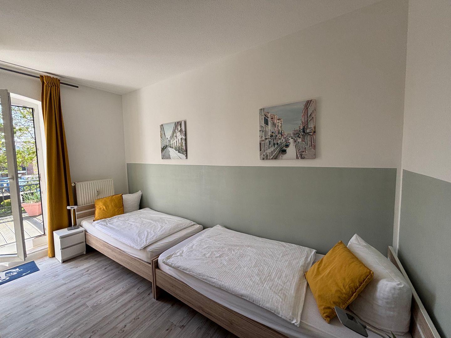 Zwei Schlafzimmer. Ein Schlafzimmer mit zwei Einzelbetten. Maße 0,90 m x 2,00 m.