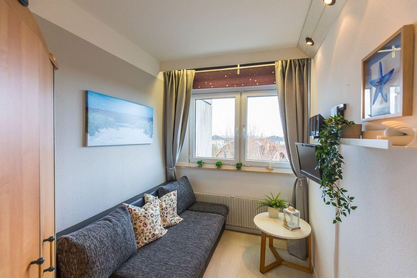 - Wohn-, Schlafzimmer mit gemütlichem Sofa und TV,