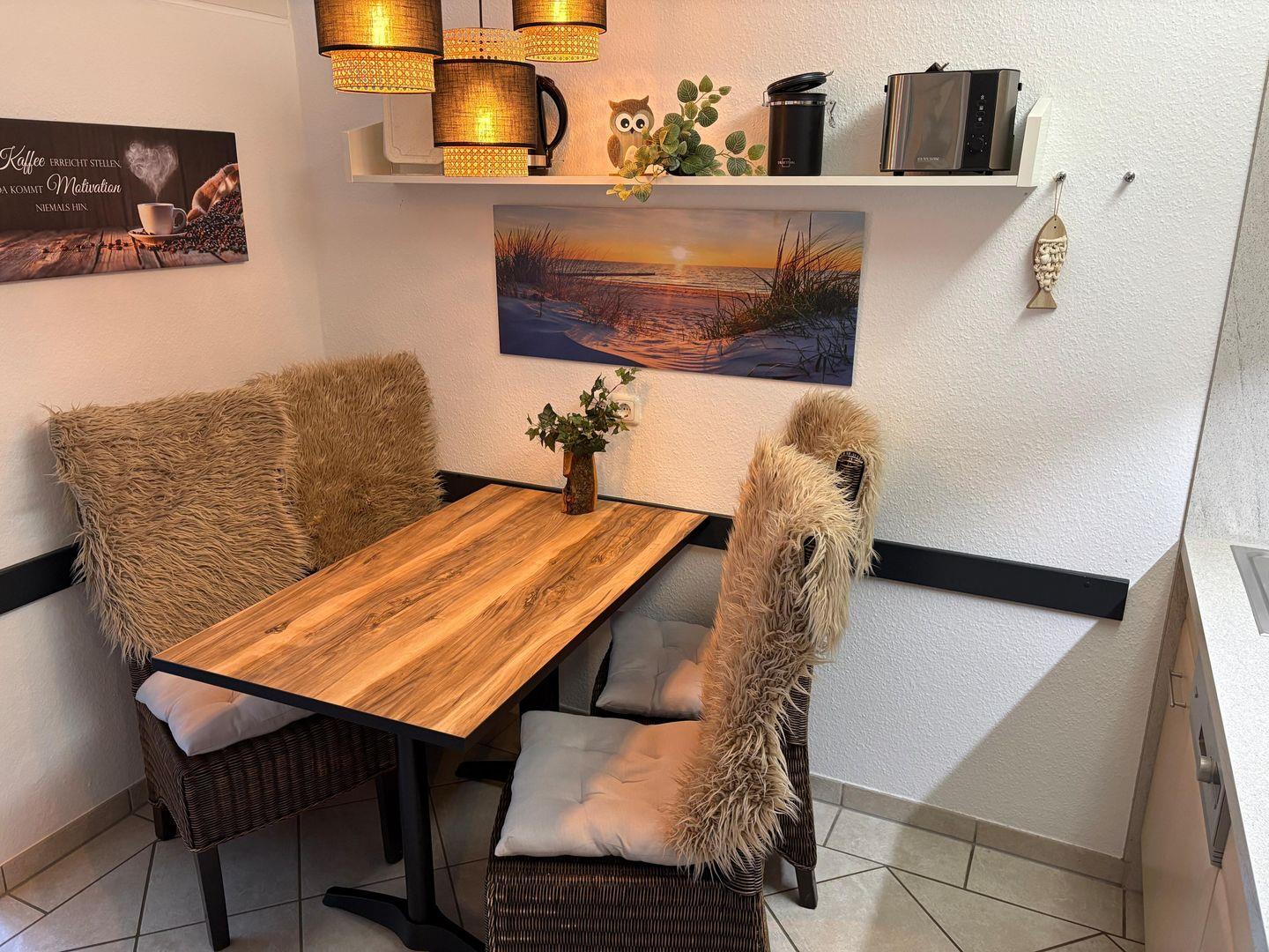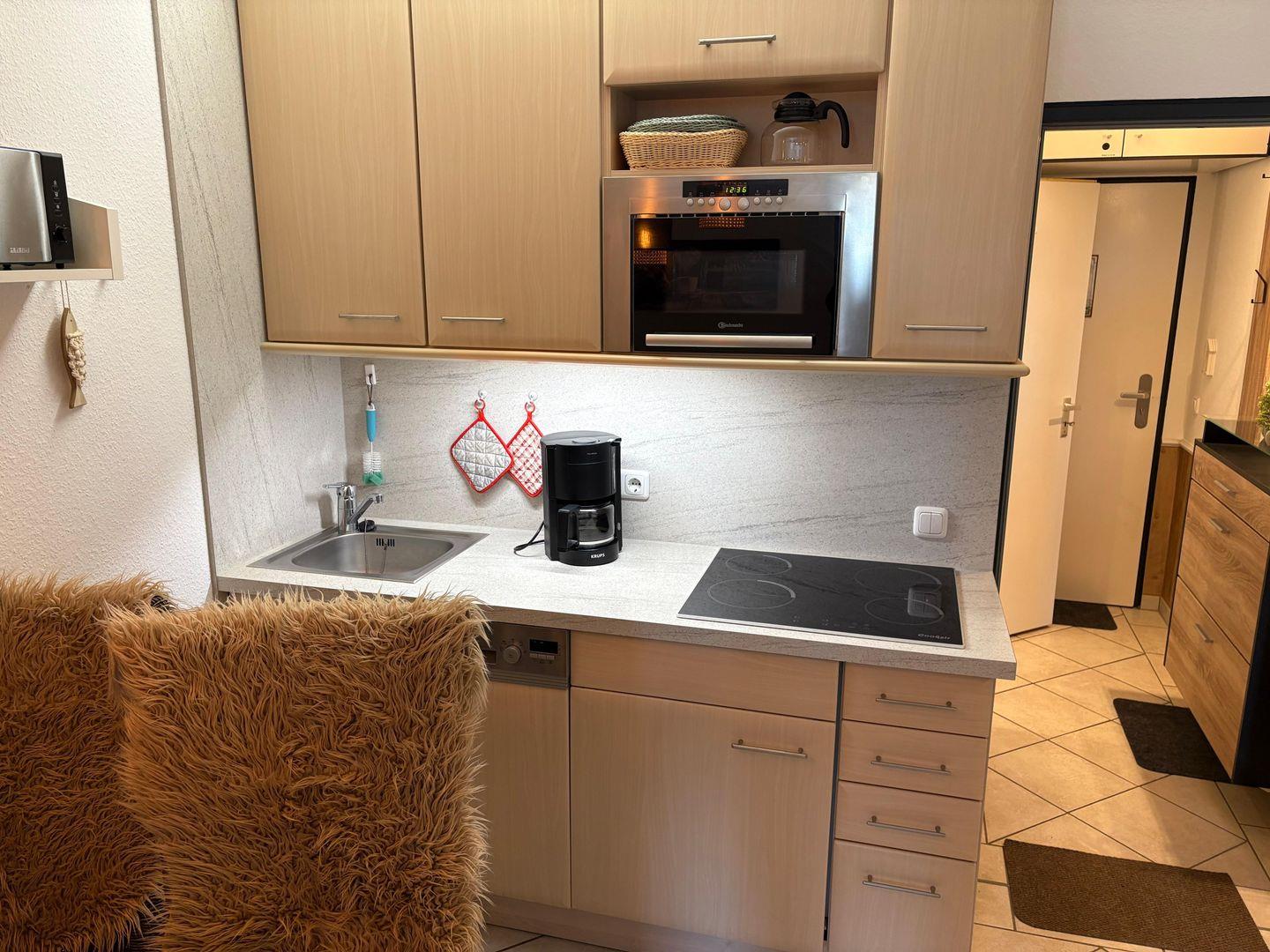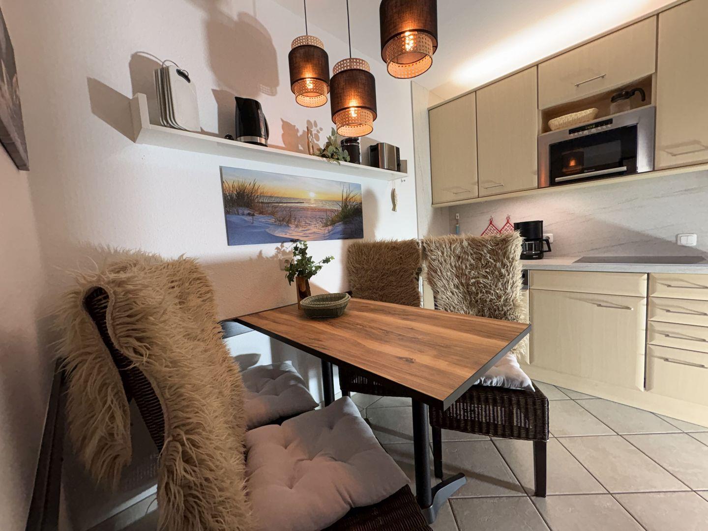 - Küche mit Essplatz für 4 Personen und Küchenzeile und TV