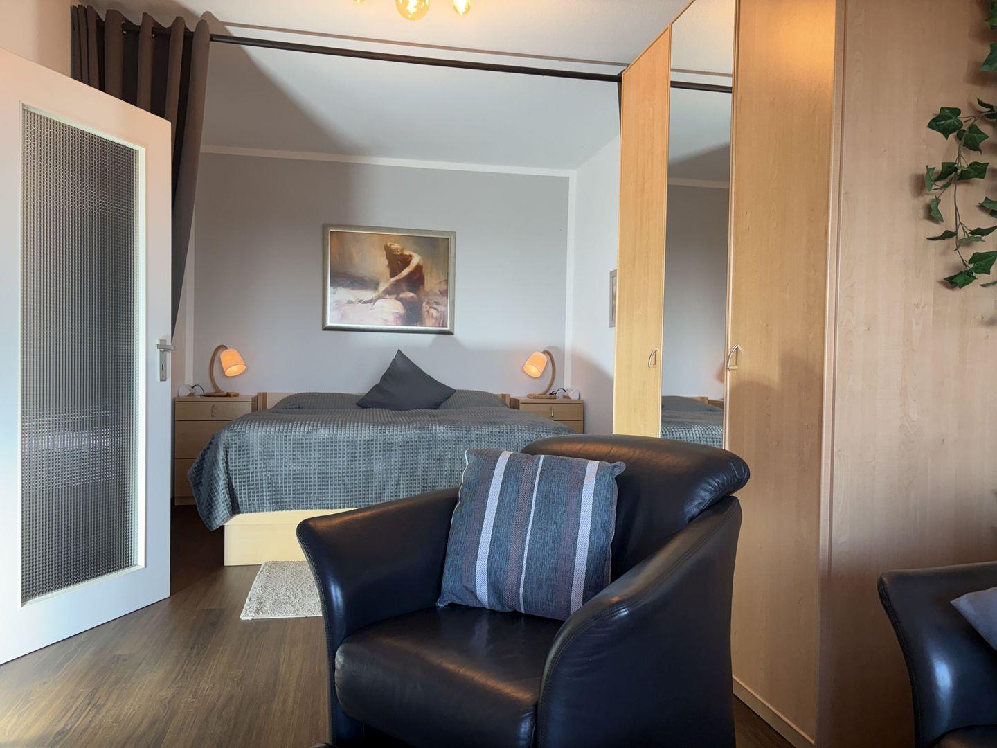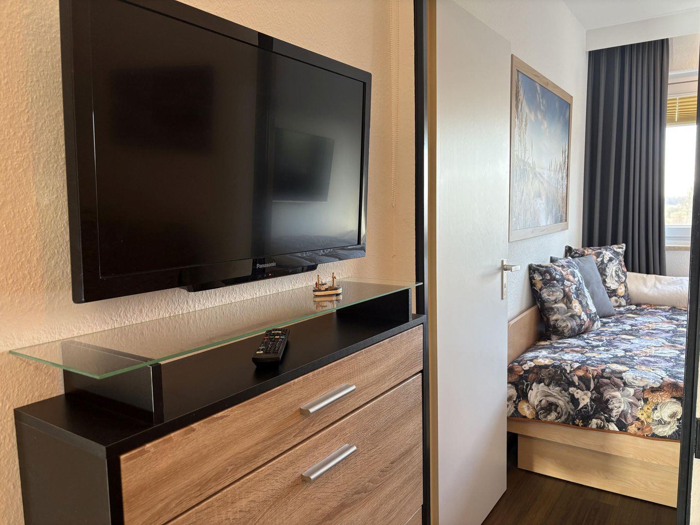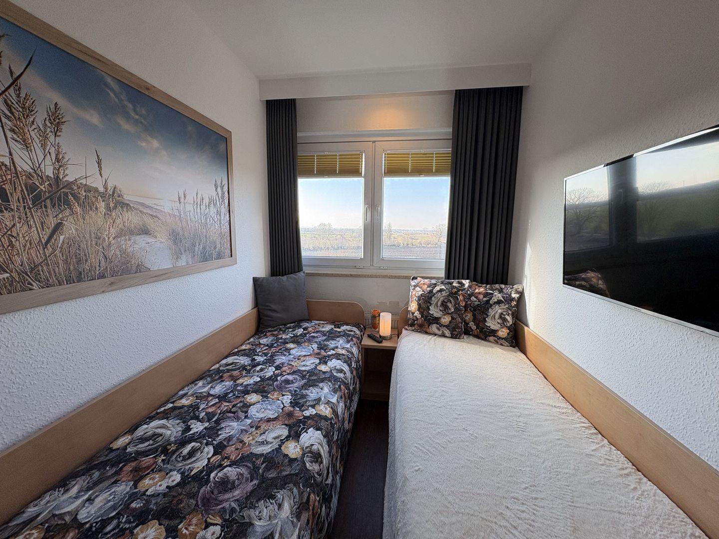 - separater Schlafraum mit zwei Einzelbetten (Liegefläche 2x 80 x 200 cm), TV und Kleiderschrank