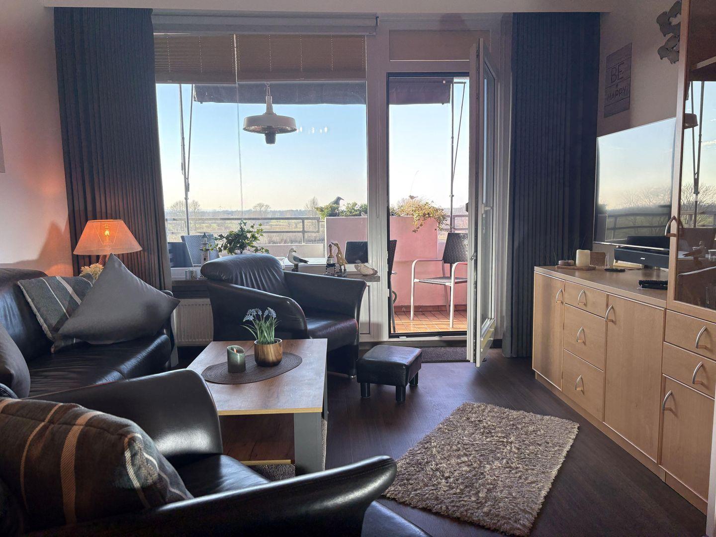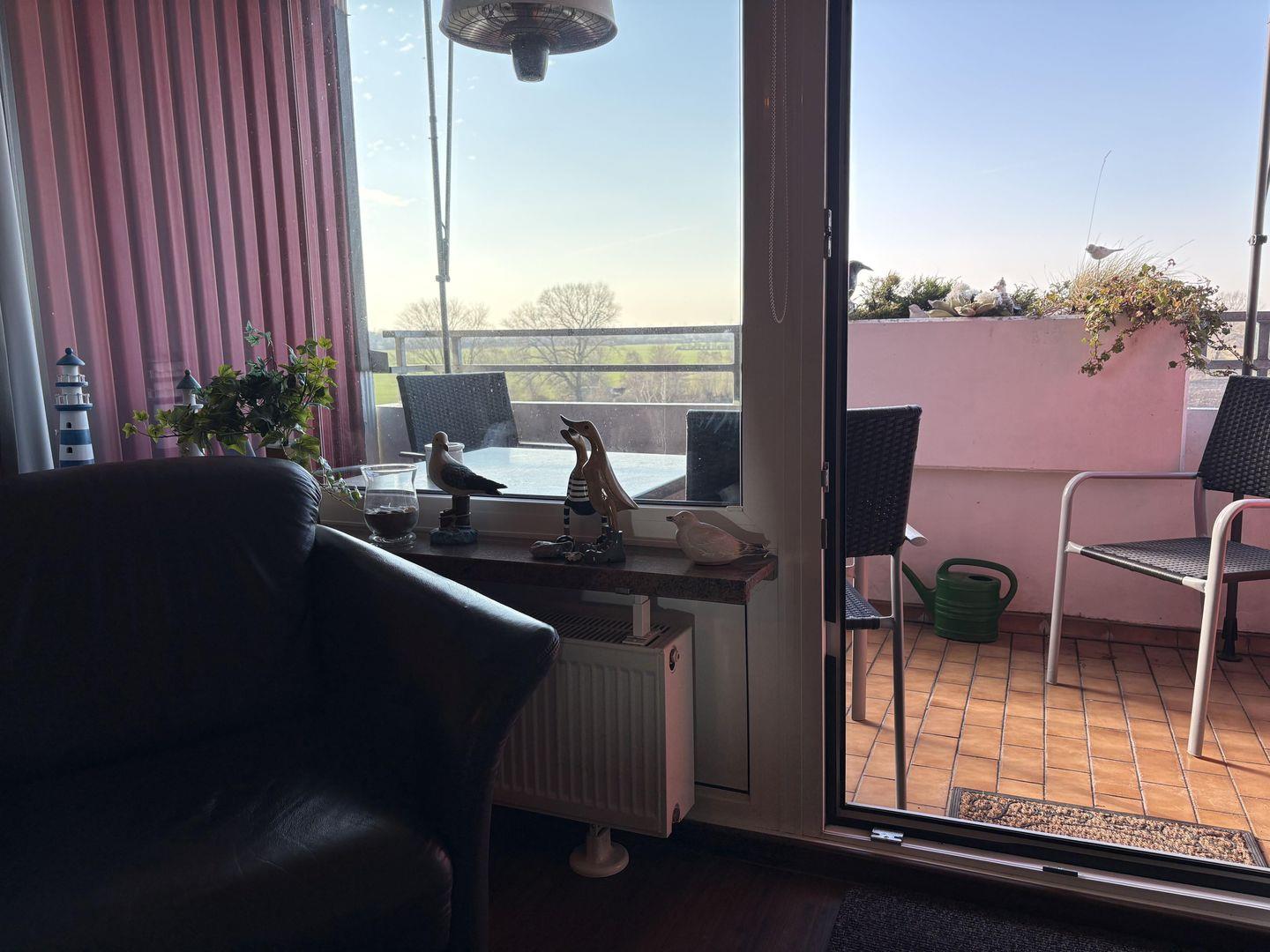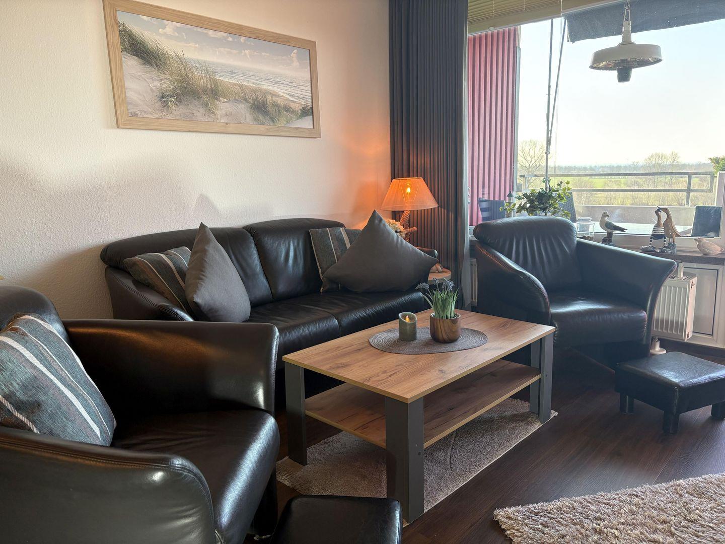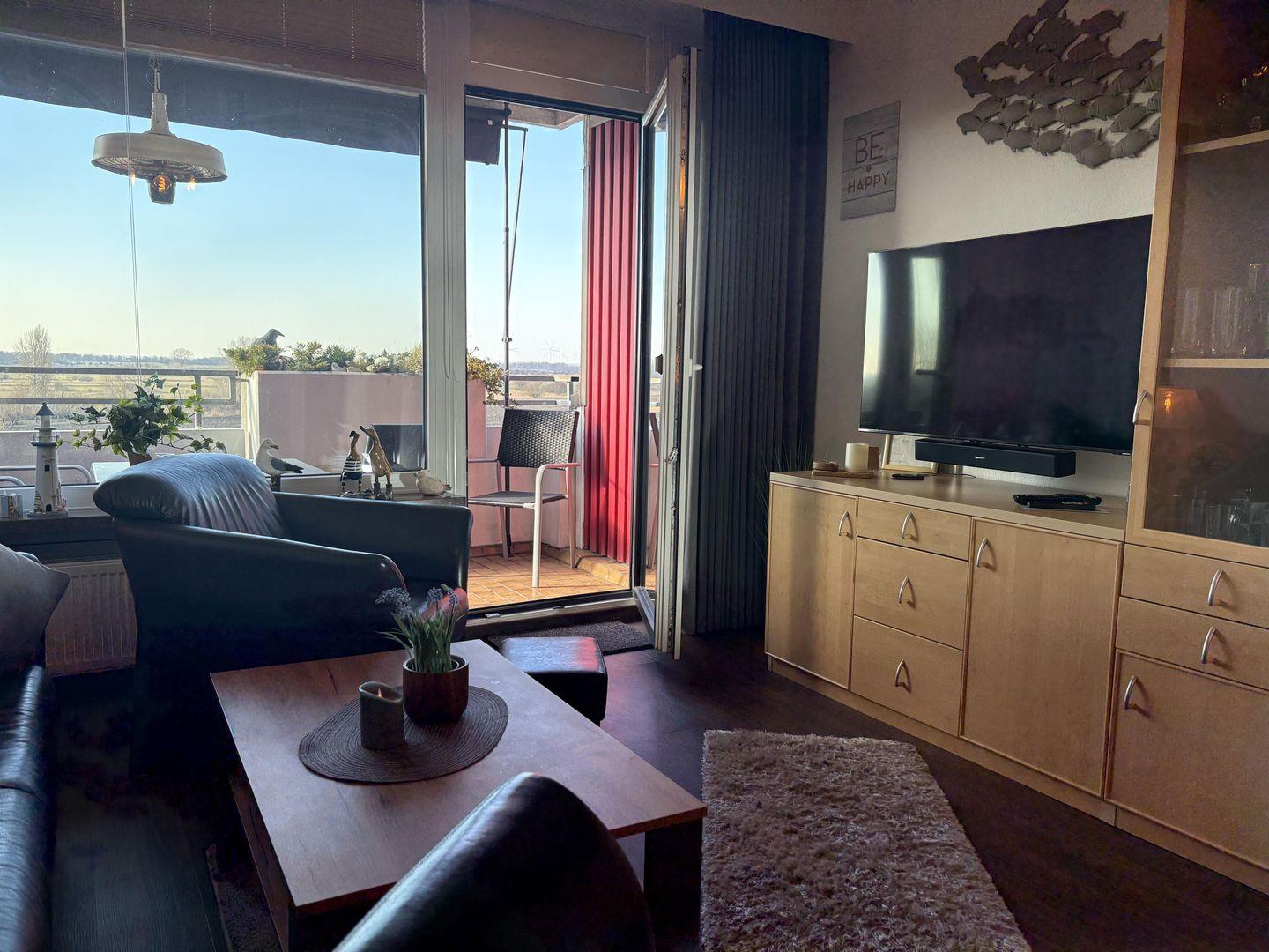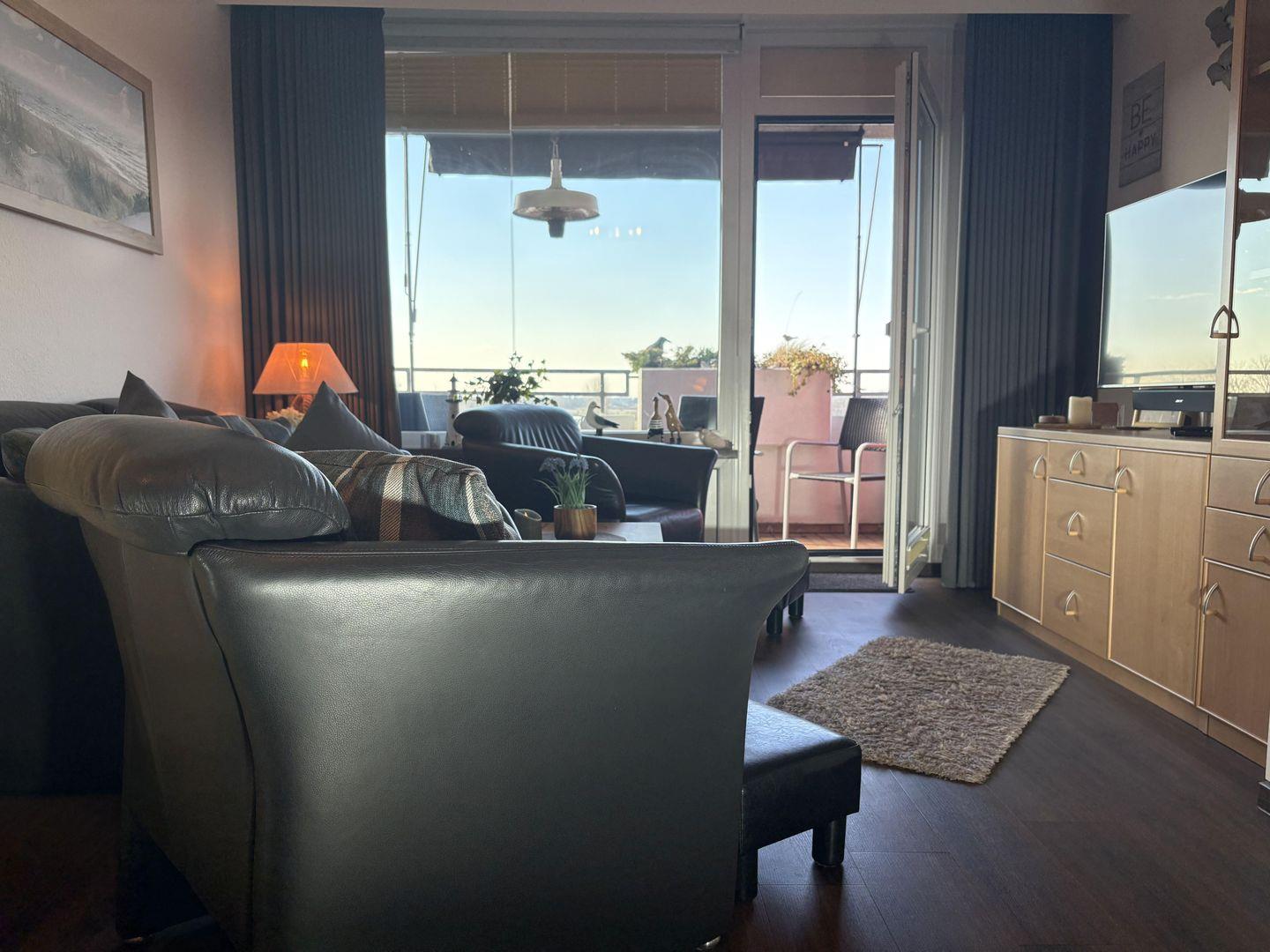 - Wohnzimmer mit direktem Zugang zum überdachten möblierten Balkon (inklusive Heizstrahler)