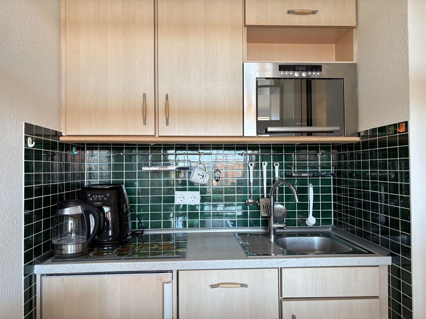 - Küche mit Geschirrspüler, Mikrowelle mit Grillfunktion und Airfryer