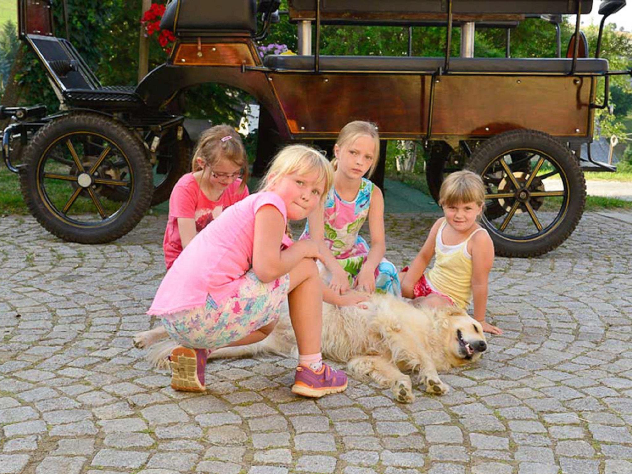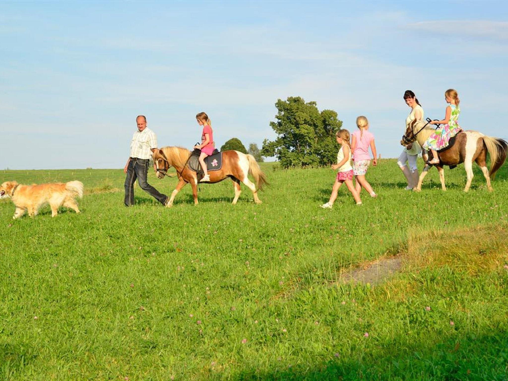 Während die Großen Ruhe und Entspannung finden, gibt es für unsere kleinen Gäste hier viel zu entdecken und jede Menge Platz zum Herumtoben. Unsere Ponys Rosalie und Lotte lassen sich gern reiten, möchten auch geputzt oder einfach nur gestreichelt werden. Auch bei den vielen anderen Tieren, die täglich versorgt werden, bieten wir auf Wunsch und Interesse die Mitarbeit auf dem Hof an.