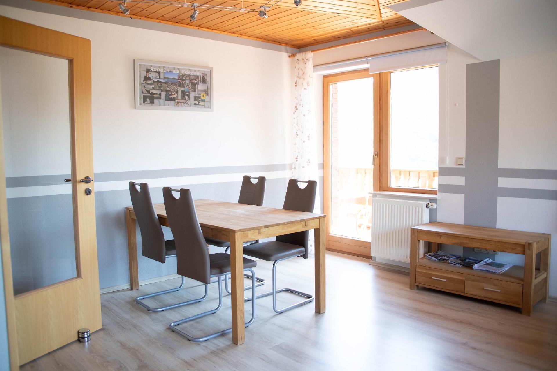 The balcony invites you to spend relaxing hours outdoors, although barbecuing is not permitted here (the spacious balcony is shared with the neighbouring holiday flat). Lake Edersee and the neighbouring Kellerwald-Edersee National Park offer a wide range of activities for nature lovers and active holidaymakers. Only 300 - 500 metres away (5 minutes' walk) from the holiday apartment is the Edersee with the Edertal barrier wall, which is not only ideal for walks, but also for water sports: Surfing, sailing, canoeing, kayaking, diving and fishing are popular leisure activities here. Windsurfers will find ideal conditions in various bays, and several surf schools offer courses for beginners and advanced surfers (Rehbach approx. 3km away).