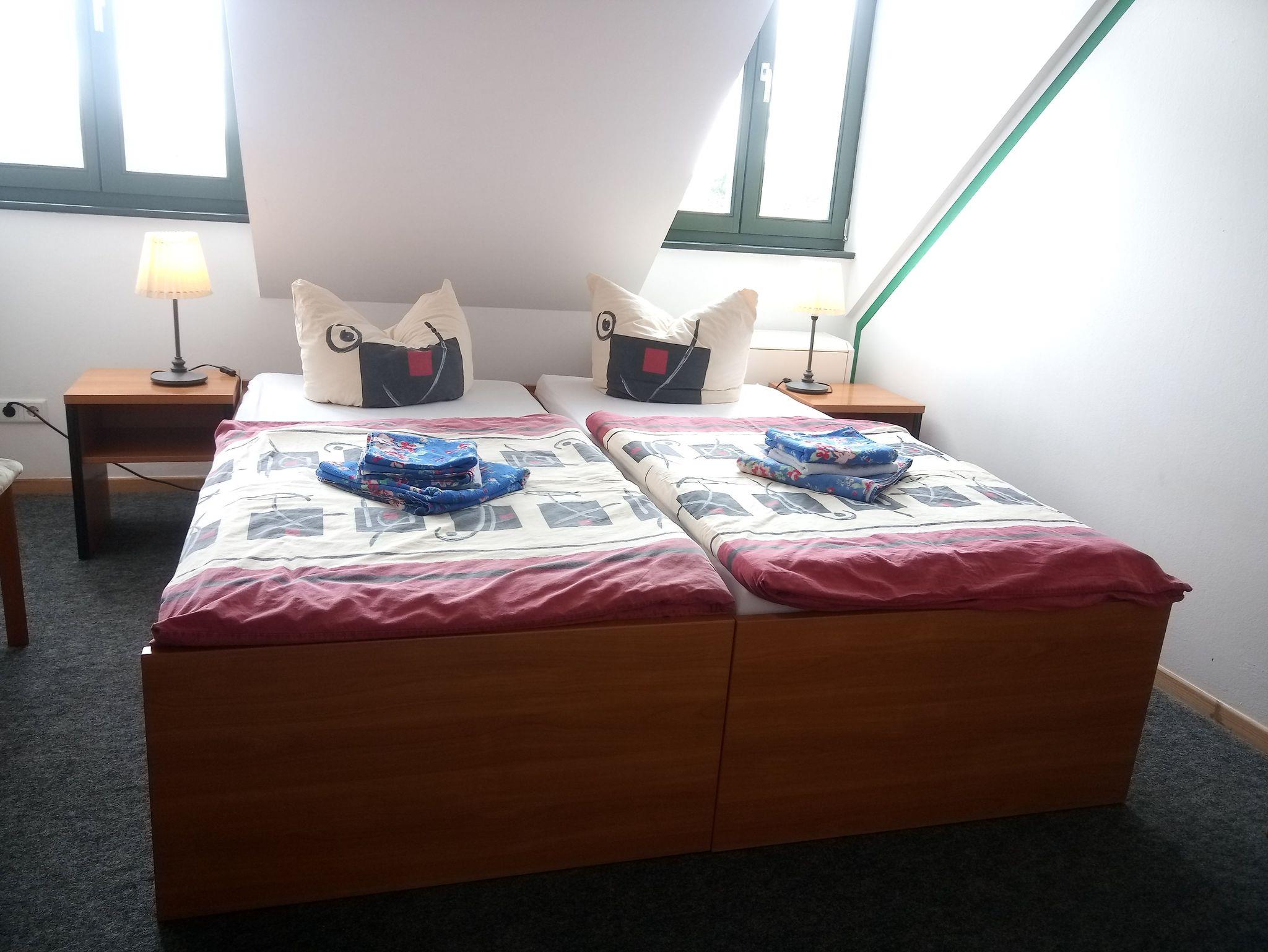 Zimmer 12 hat ein Doppelstockbett, was für eine Aufbettung möglich ist.