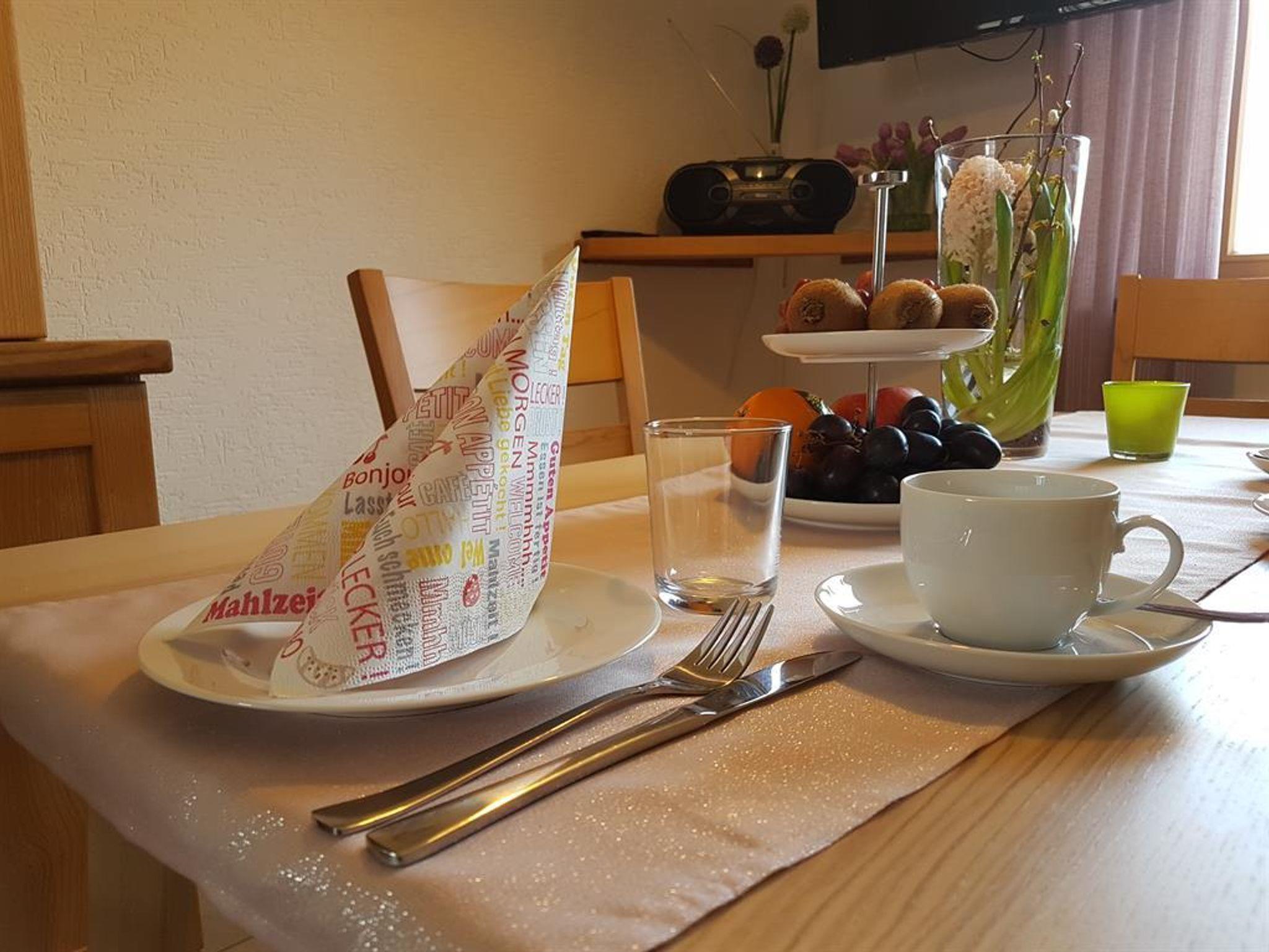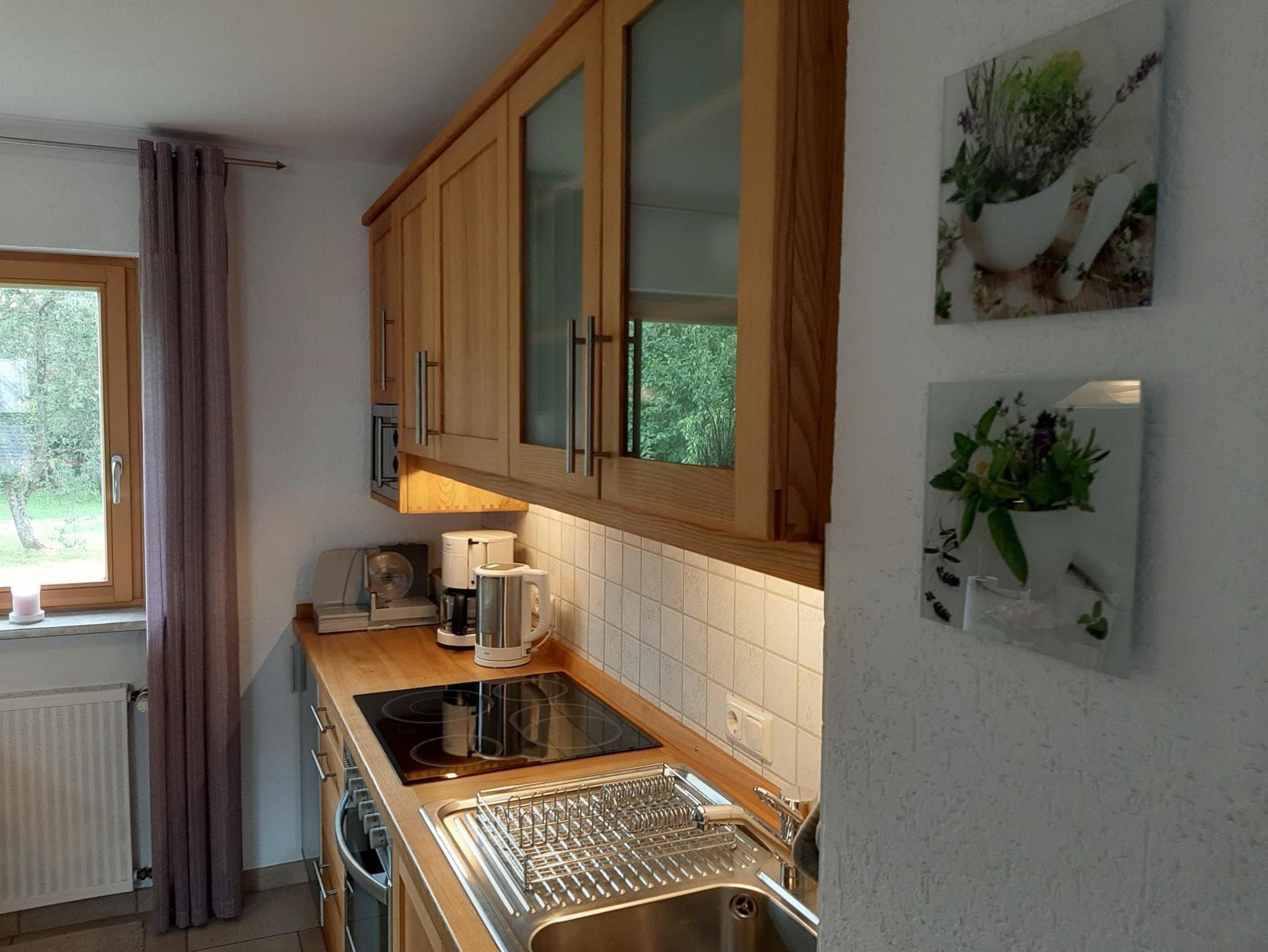 In unserer Ferienwohnung finden Sie 1 komplett eingerichtete Wohnküche mit SAT-TV, Radio und Ledersofa, einen Essplatz für 4 Personen, 1 Schlafzimmer mit Doppelbett (Durchgangszimmer zum Kinderzimmer), 1 Kinderzimmer mit Etagenbett (0,90 x 1,90 m), 1 Bad mit Dusche und WC.
