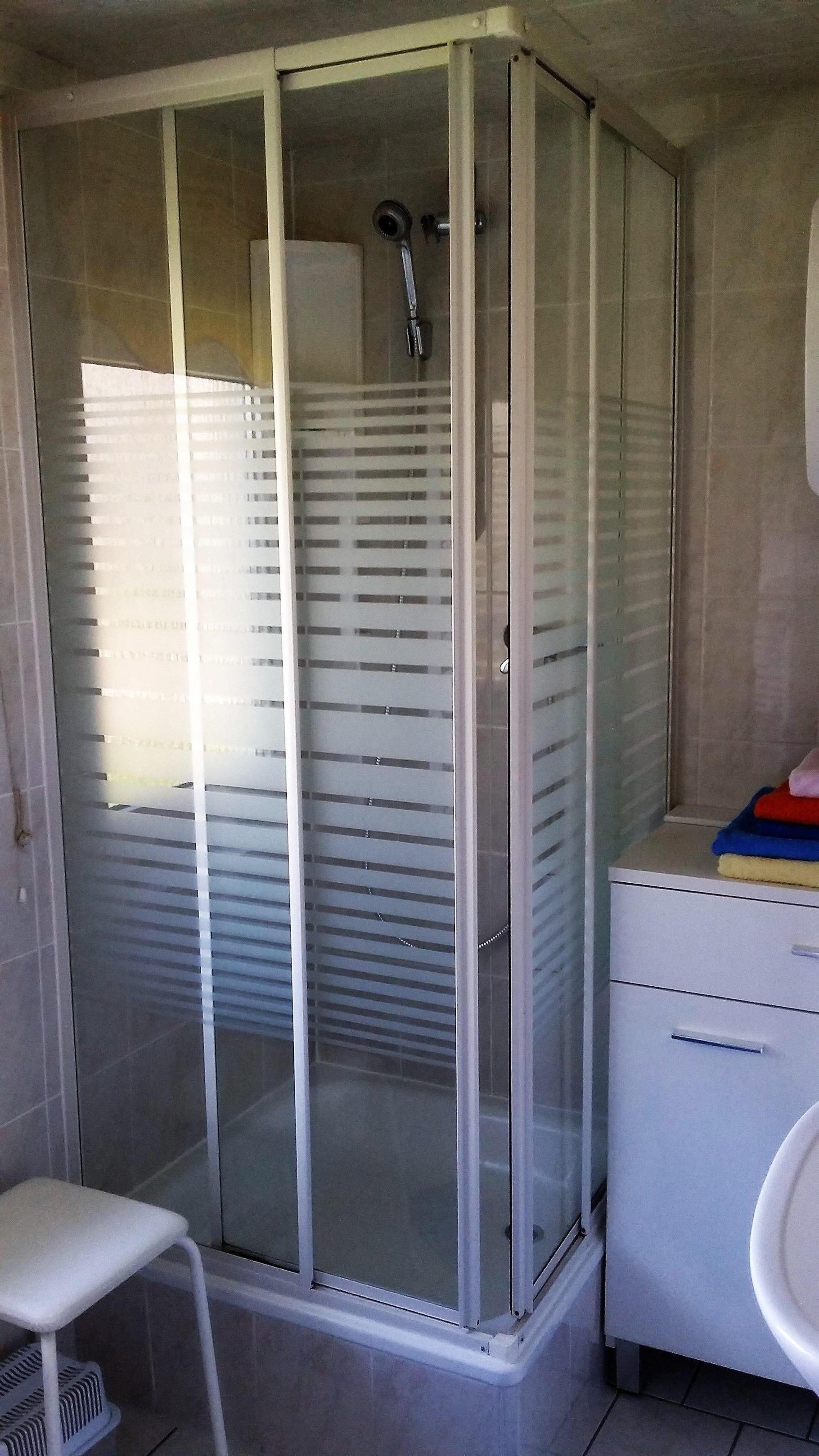 -Dusche, WC, TV , Radio, gut ausgestattete Mini-Küche (2 Kochplatten mit Dunstabzug, Kühlschrank, Wasserkocher, Kaffeemaschine, Mikrowelle, Toaster, Eierkocher, Geschirr, Gläser, Besteck )