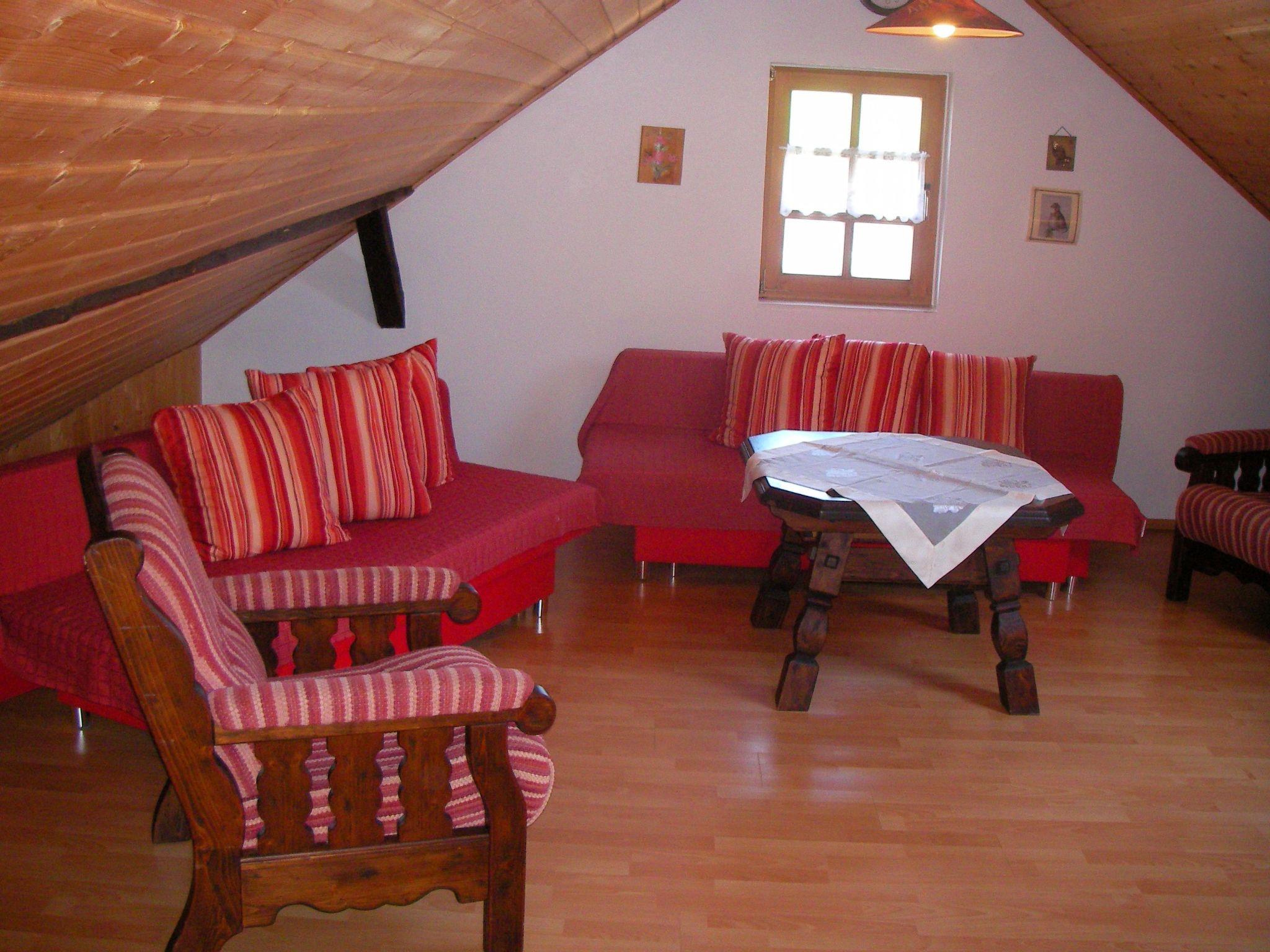 Living room also serves as a bedroom Radio/TV, W-Lan available Living room is furnished with 1x table+2-seater sofa+2x single armchairs. 2 sofa beds are also available.