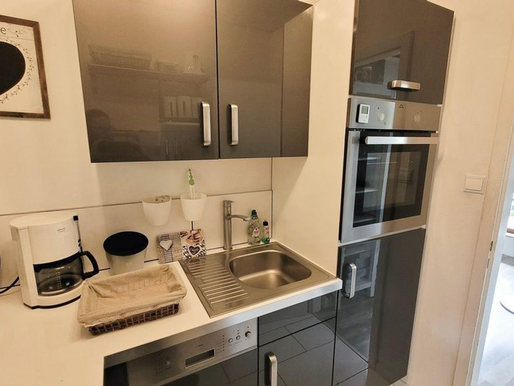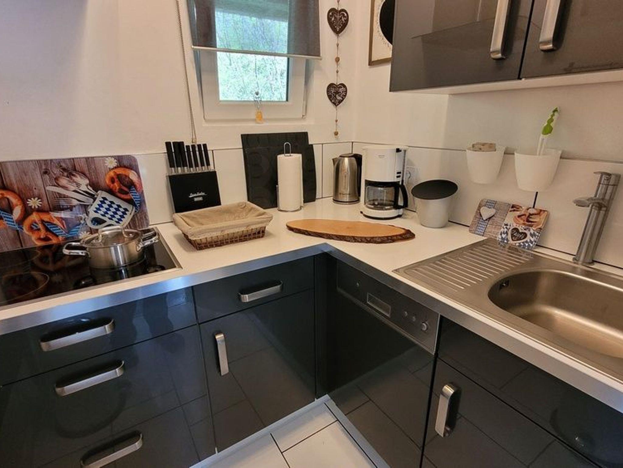 Die Küche bietet neben Kühlschrank mit Eisfach, Herd, Backofen auch eine Spülmaschine. Natürlich findet Ihr Geschirr, Besteck, Gläser und alle Küchenutensilien vor ? und das ganze in einheitlichem Stil.