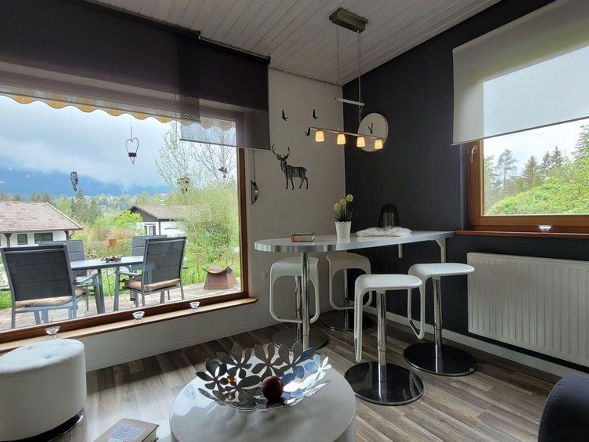 Das Haus bietet 55 Quadratmeter Wohnfläche plus Keller und Terrasse und steht auf einem 600 Quadratmeter großen Grundstück eingebettet ins Feriendorf Weissensee. Im Wohnzimmer bietet ein Sofa mit Recamiere Platz, um es sich abends vor dem Fernseher bequem zu machen oder einfach aus dem Panoramafenster zu blicken, die Ruhe zu genießen und die Eichhörnchen (und mit etwas Glück auch schon mal ein Reh oder einen Fuchs) zu beobachten. Internet ist vorhanden (WLAN und internetfähiger Fernseher). Im Wohnzimmer findet Ihr ebenfalls einen Essplatz vor, den wir als offene Theke mit 4 dreh- und höhenverstellbaren gemütlichen Hockern ausgestaltet haben.