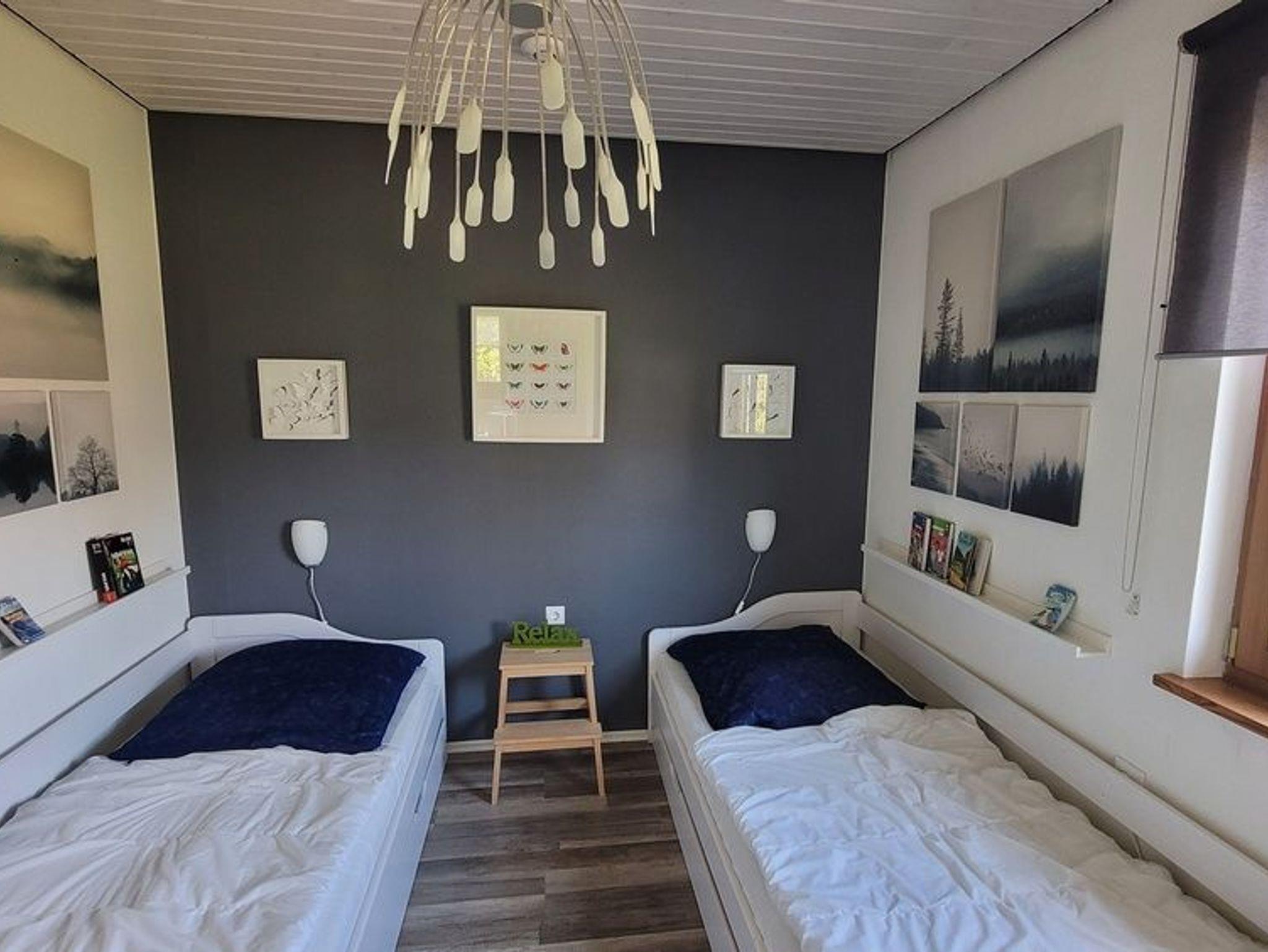 Das Haus hat zwei Schlafzimmer. Im Elternschlafzimmer findet Ihr ein Doppelbett und im Kinderzimmer zwei Einzelbetten mit einem Zusatzbett (ausziehbare Bett-Schublade mit 12cm dicker Matratze). Somit könnten auch drei Kinder hier übernachten, wenn man ein bisschen zusammenrückt.