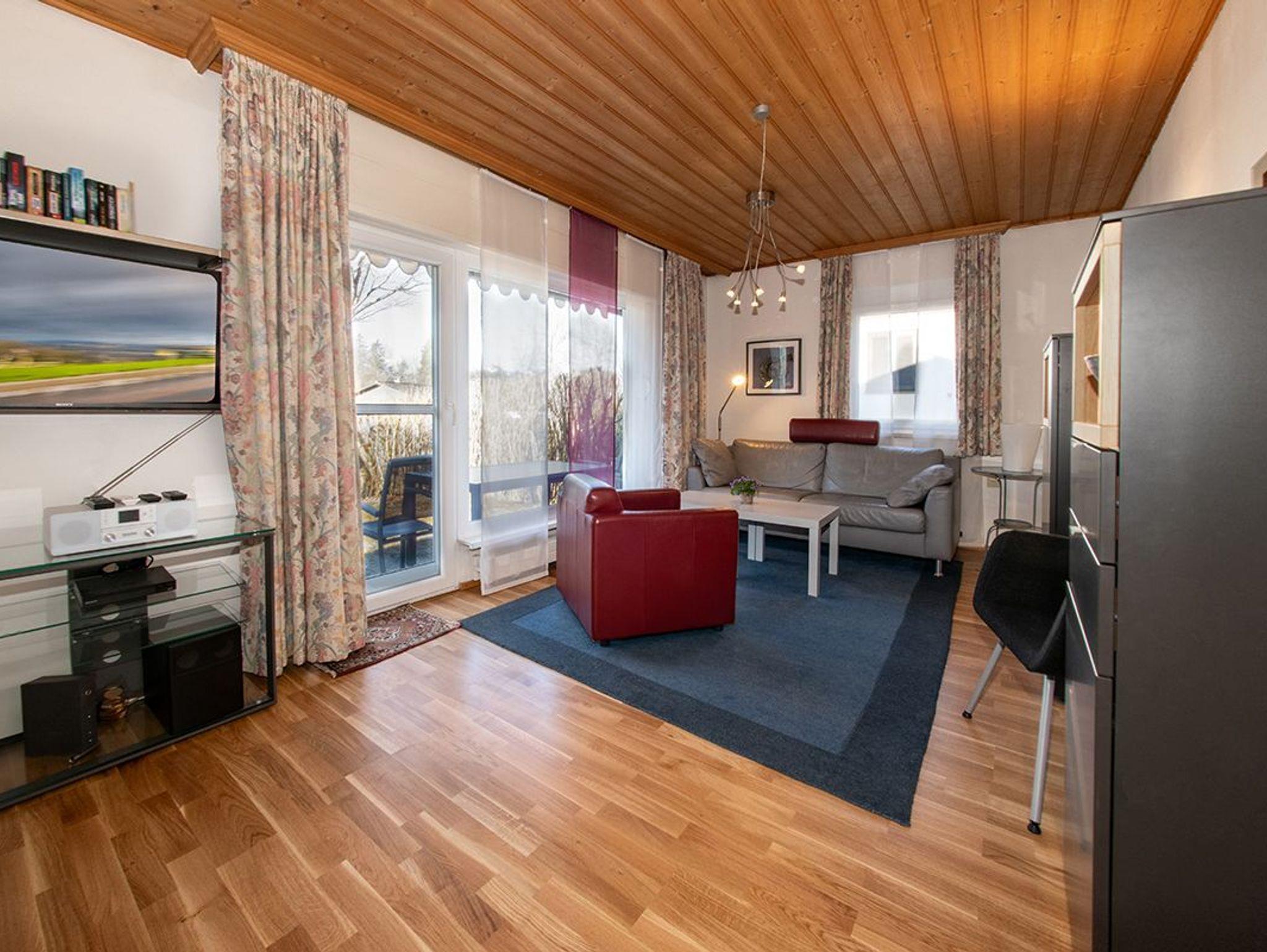 Das bequem eingerichtete Wohnzimmer ist mit Kabelfernsehen, Radio und blueray-Player ausgestattet, ein Internet-Anschluss steht zur Verfügung.