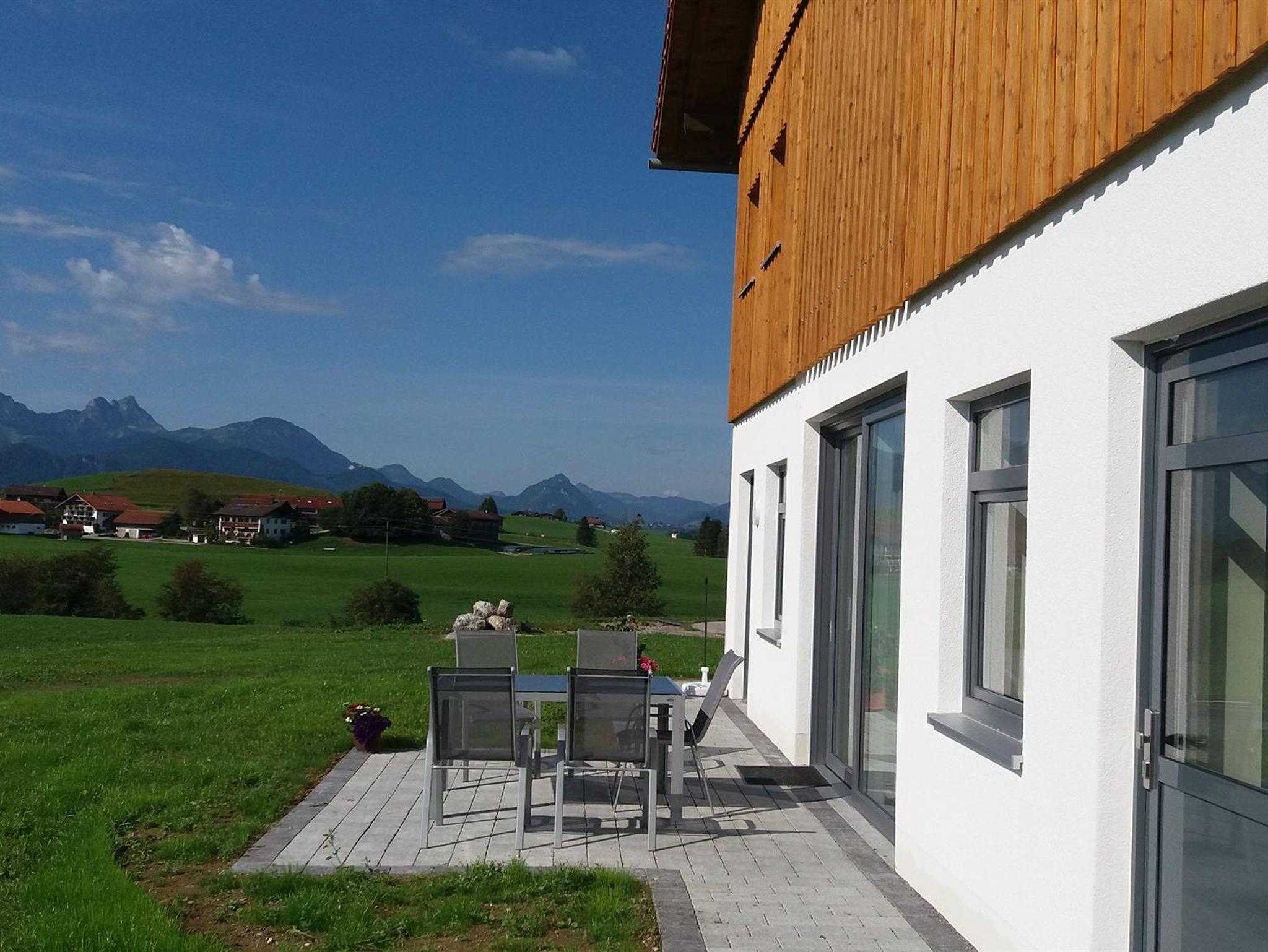 Herzlich willkommen auf dem Ferienhof Köpf in Häusern. Der Ort liegt zwischen dem Hopfensee und Forggensee. Unser Bauernhof mit zwei Häusern, bietet Ihnen einen herrlichen Panoramablick auf die Allgäuer Alpen. Idealer Ausgangspunkt für Rad- und Wandertouren. Wir bieten Ihnen drei gemütliche Ferienwohnungen mit Balkon und Gartenhaus mit Grill, Liegewiese mit Spielplatz und Infrarotkabine.