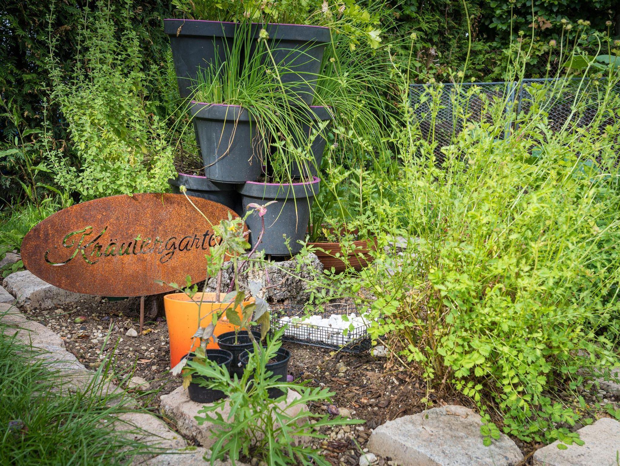 • 1 Terasse mit Gartenmöbel teilweise überdacht