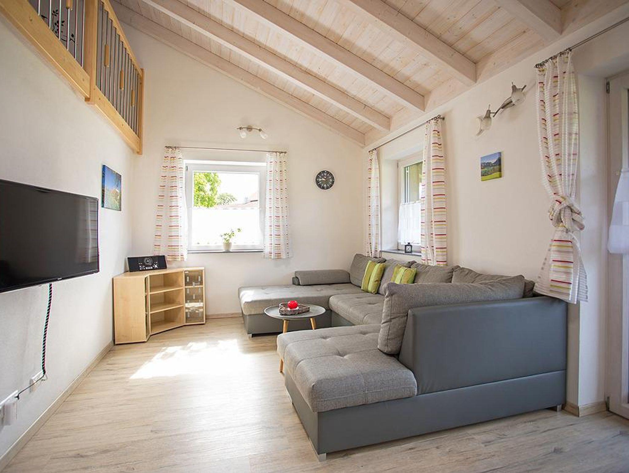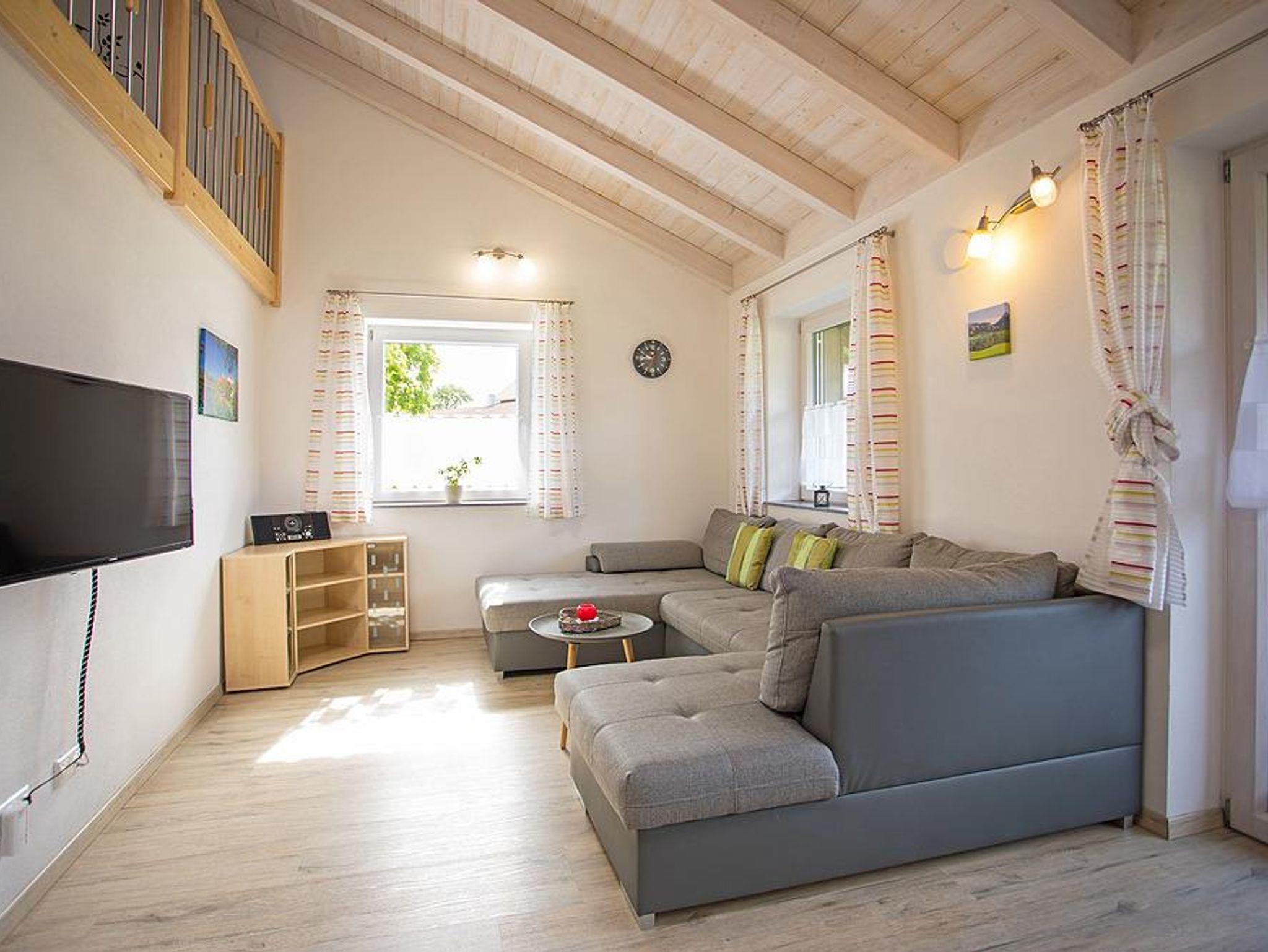 Die 72qm große Ferienwohnung befindet sich in einem Niedrigenergiehaus. Dieses liegt im hügeligen Voralpenland zwischen Füssen und Hopfen am See. Hier erleben Sie herrliche Ruhe und eine schöne Landschaft mit Wiesen, Wälder, Badeseen und Bergen. Ideal zum Wandern, Radeln, Reiten, Spazierengehen und Schwimmen. Das Schloß Neuschwanstein, der Forggensee und verschiedene Bergbahnen sind nur wenige Autominuten von der Ferienwohnung entfernt. Die großzügigen Räume der Ferienwohnung bieten Platz für bis zu sieben Personen, und der Südbalkon lädt zum Entspannen ein. Die Königscard ist auch dabei! Mit dieser können Sie viele tolle Ausflüge und Aktivitäten ohne Zuzahlung erleben.
