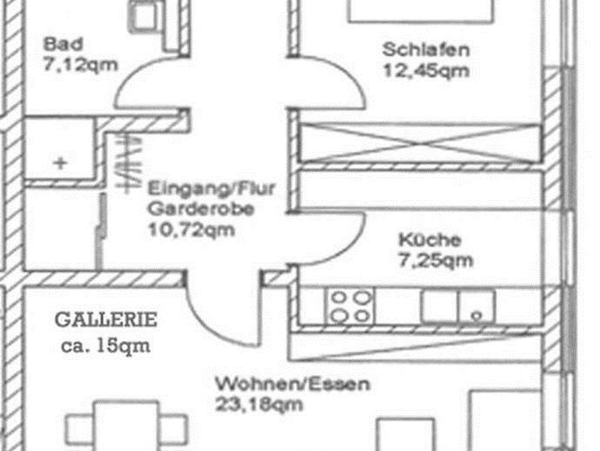 Das Hauptschlafzimmer liegt nordöstlich und das Galerieschlafzimmer ist über eine Treppe durch das Wohnzimmer erreichbar.