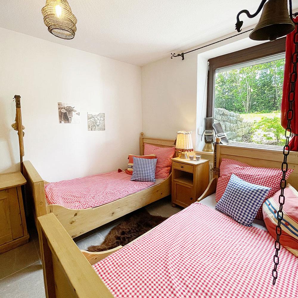 Das Appartement Bergblick hat einen eigenen Zugang und ist über den Garten westseitig zu erreichen. Das schick eingerichtete 85 qm große Souterrain-Appartement ist ideal für 2-4 Personen. Es verfügt über ein Schlafzimmer mit Doppelbett sowie ein Kinderzimmer mit zwei Einzelbetten.