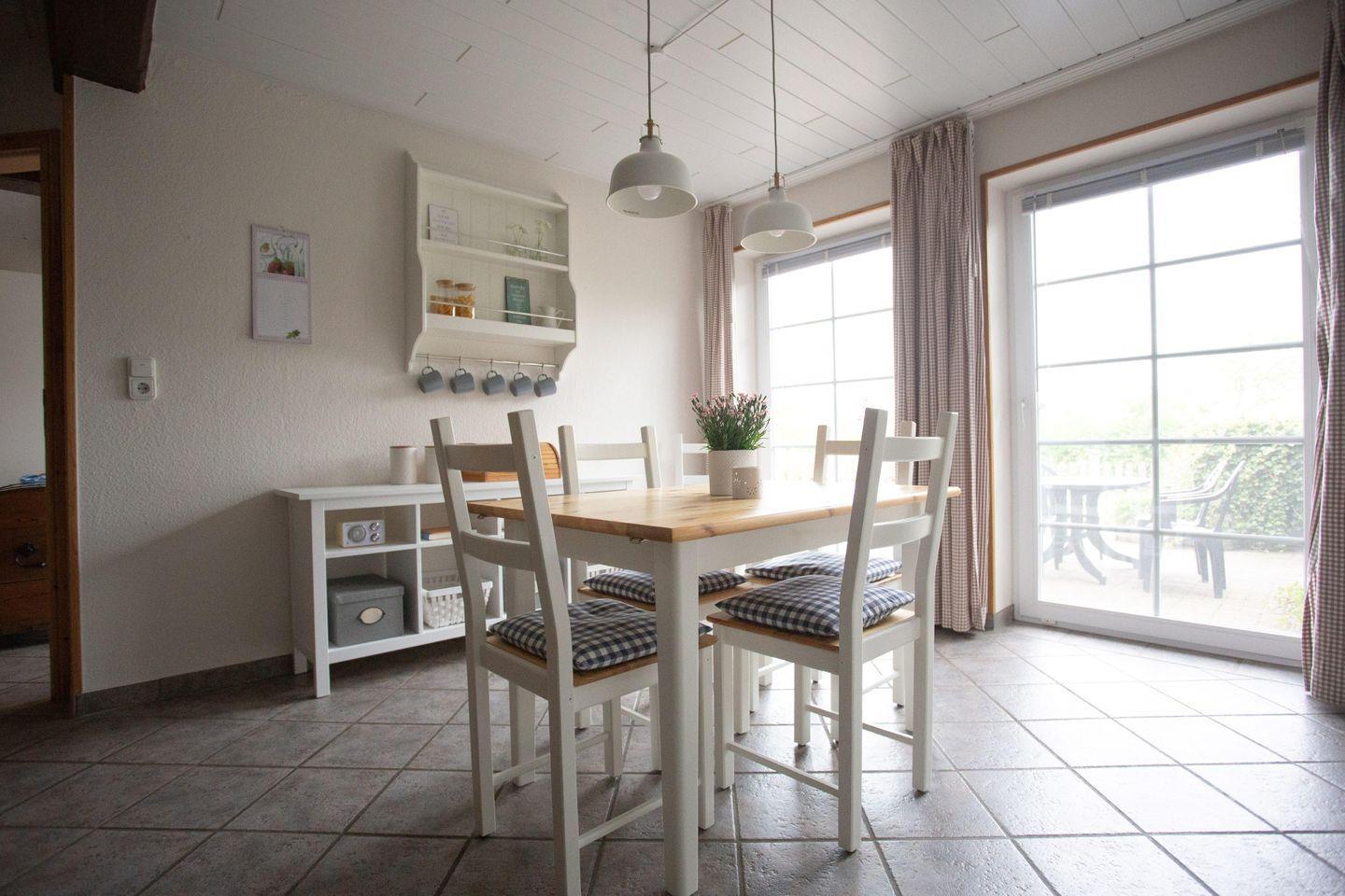 Die 100 m² große, sehr geschmackvoll eingerichtete Ferienhaushälfte "Abendrot" liegt in dem kleinen Ort Fahretoft in der Nähe der dänischen Grenze.