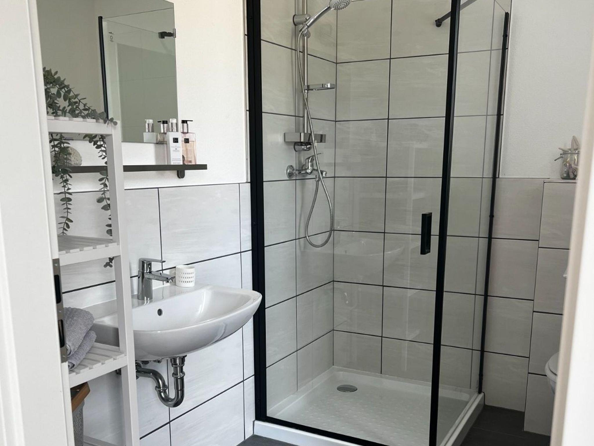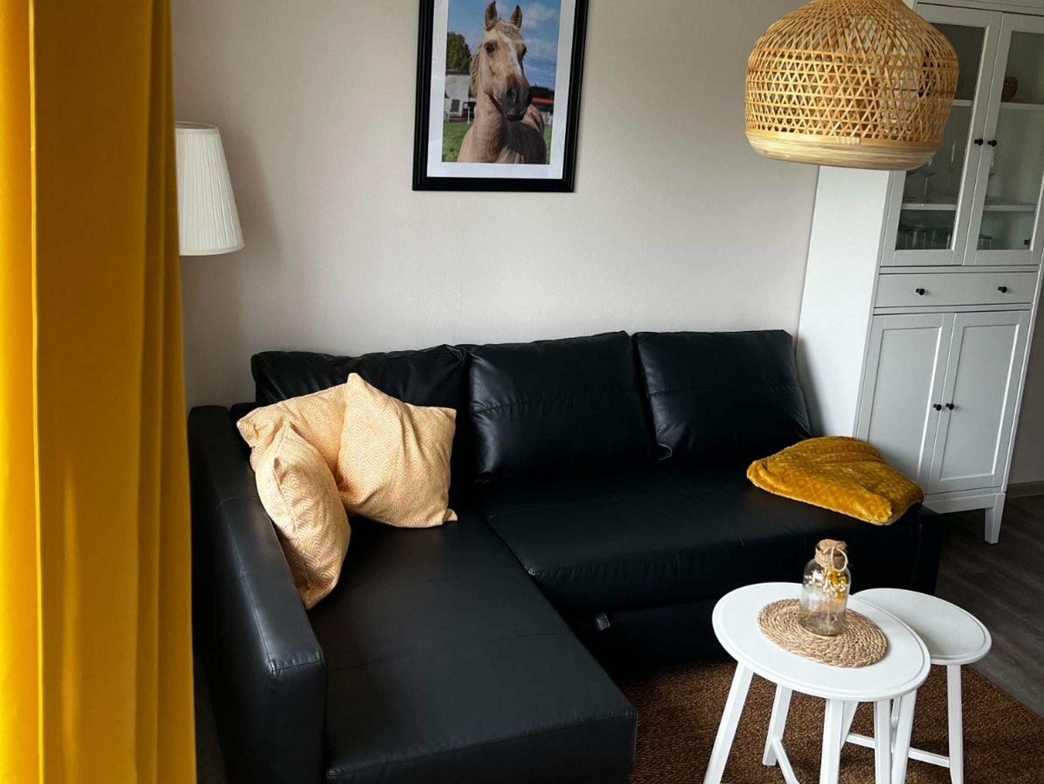 Die frisch renovierte Ferienwohnung Vampi verfügt über eine modern eingerichtete Küche, ein Schlafzimmer, ein Wohnzimmer mit Flachbildfernseher und ein Bad. In dem ruhig gelegenen Schlafzimmer verbringen bis zu zwei Personen eine ausgeruhte Nacht in einem großen Doppelbett. Für eine dritte Person bieten wir als Aufbettung eine Schlafcouch in dem offenen Wohnbereich. In der Küche befindet sich alles, was Sie für ein leckeres Frühstück, Mittagessen oder Barbecue am Abend benötigen. Zur Ausstattung gehören eine Geschirrspülmaschine, ein Toaster, eine Kaffeemaschine, ein Backofen, ein 4-Platten-Herd und eine großzügige Ausstattung mit Ess- und Kochgeschirr. Der offene Wohn- und Essbereich lädt zum Verweilen ein. Außerdem gibt es einen direkten Zugang zu einer eigenen Holzterrasse mit kleinem Garten. Hier lassen Sie den Alltag hinter sich und die Seele baumeln. Gönnen Sie sich eine Tasse Tee oder Kaffee auf unseren modernen Gartenmöbeln im Outdoorbereich. Ihr Fahrzeug können Sie direkt an der Ferienwohnung parken - es steht sicher auf unserem Gelände. Wir freuen uns nun, Sie auf dem Falkenhof in Meisdorf begrüßen zu dürfen und wünschen Ihnen eine gute Zeit.