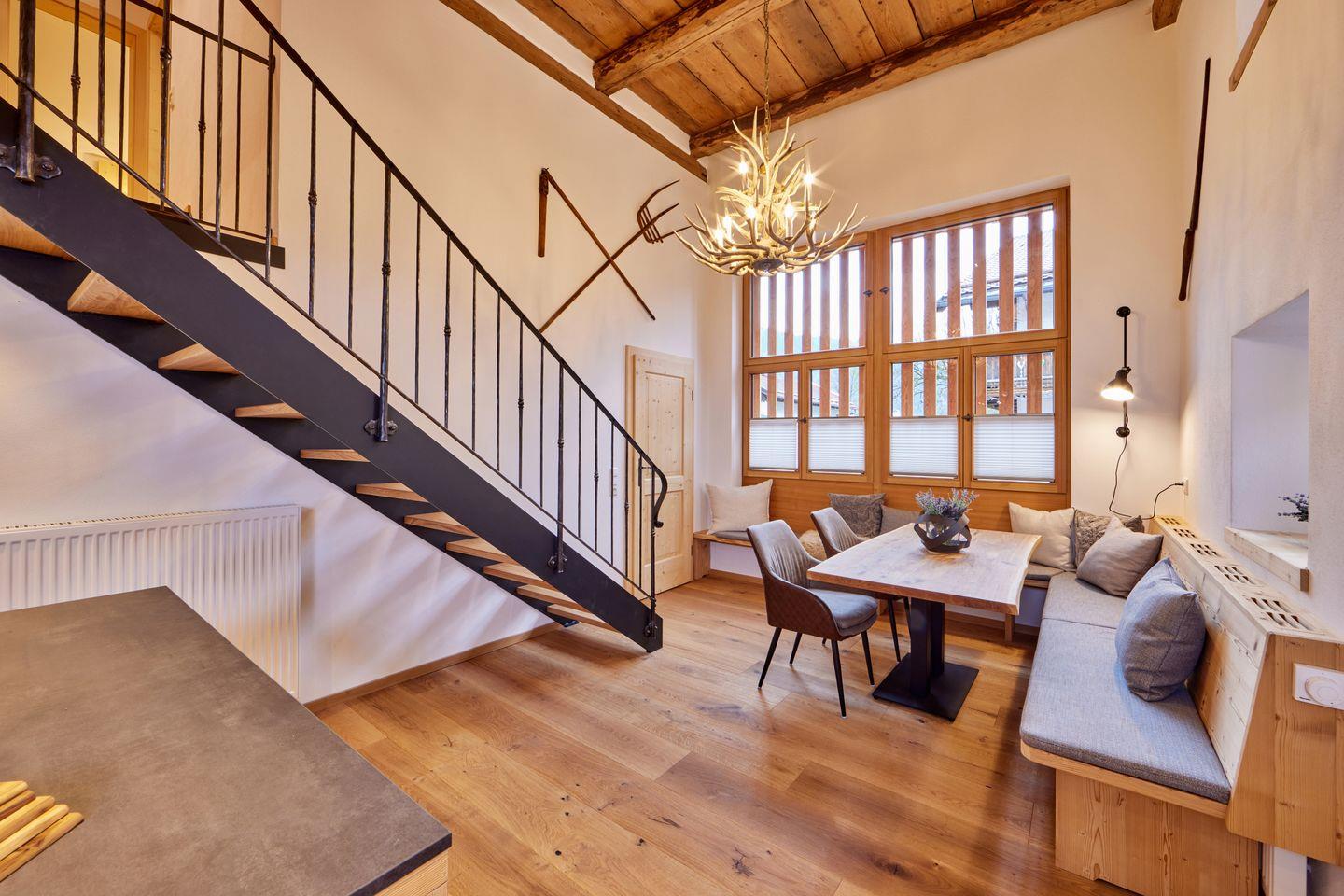 Unveränderte Strukturen, wie ursprüngliche Holzbalken und Mauerwerk, sowie traditionelle handwerkliche Elemente aus Holz und Eisen, fügen sich nahtlos in die moderne Einrichtung ein, bieten den Augen stets Neues zu entdecken und geben der Unterkunft einen außergewöhnlichen, alpin-urigen Charakter. Ruhig im idyllischen Farchant gelegen, genießen Sie hier ungestört die umliegende Bergwelt. Gleichzeitig bietet Ihnen die Lage einen idealen Ausgangspunkt für kurze oder lange Entdeckungstouren in die Werdenfelser Heimat. Ein großer Spielplatz, ein Walderlebnispfad, das Freibad und die Einstiegsloipe zum Skilanglauf befinden sich in unmittelbarer Nähe.