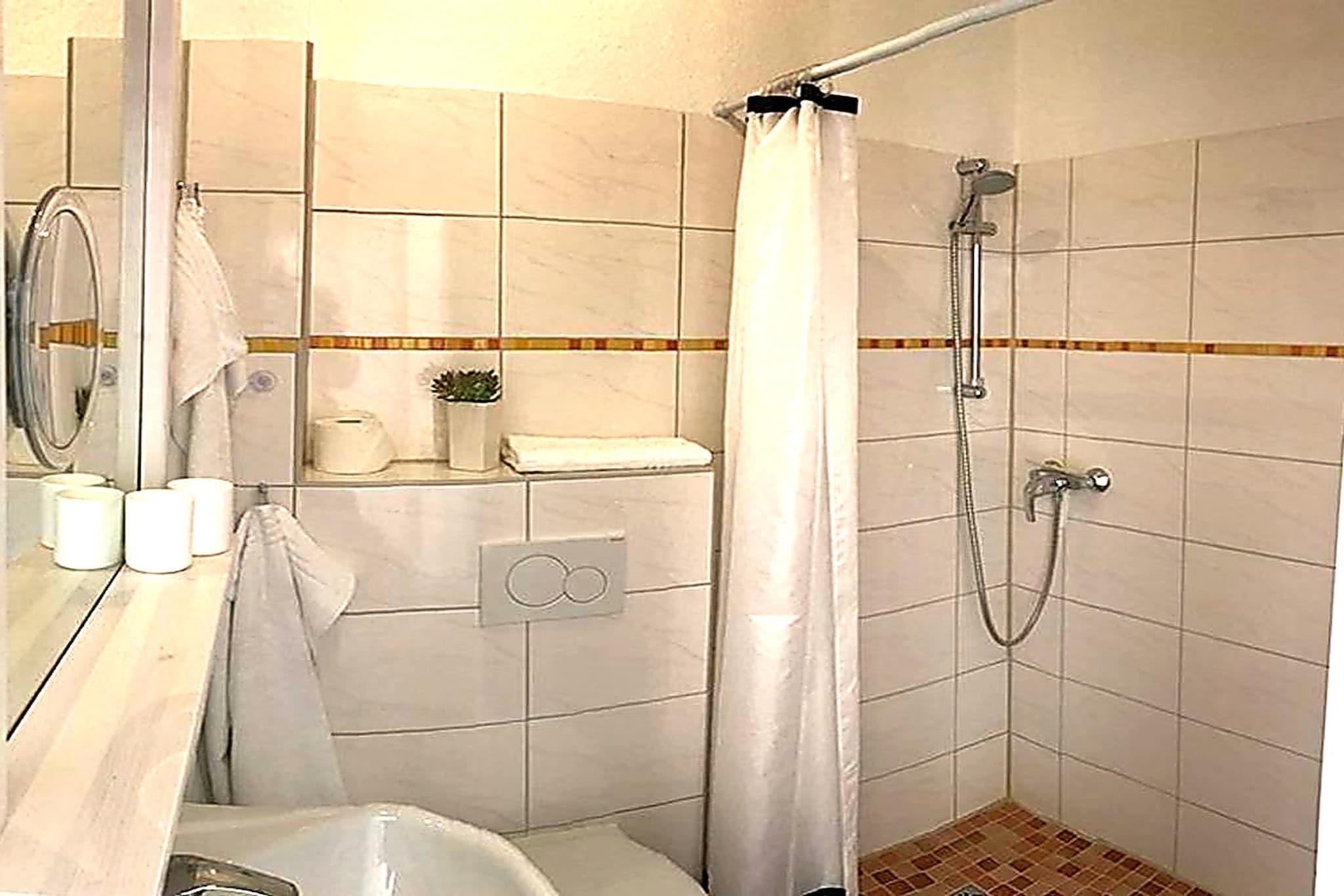 Kun 200 meter fra havet og færgehavnen tilbyder denne lejlighed på første sal i Burgtiefe-Südstrand en luftig, kæledyrsvenlig ferie for par eller små familier. Stuen/soveværelset i åbent plan har en dobbeltseng, enkelt sovesofa, tv og et hyggeligt opholdsområde, mens køkkenet er fuldt udstyret med kaffemaskine, ovn, mikroovn, opvaskemaskine og køleskab - perfekt til afslappet selvforplejning. Badeværelset har badekar med bruser, toilet, håndvask og hårtørrer, og den private balkon inviterer dig til at nyde frisk havluft og morgenkaffe. Parkering på stedet tilføjer bekvemmelighed, og kæledyr er hjerteligt velkomne, hvilket gør det ideelt for rejsende med lodne ledsagere. Med restauranter, butikker og offentlig transport inden for 400 meter, og attraktioner som Femern Aquarium (6 km) og fyrtårnet (9,5 km) i nærheden, forener denne beliggenhed kystcharme med hverdagens lethed.