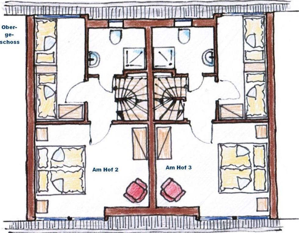 Ein Duschbad und ein separates WC befinden sich im Erdgeschoss. In der 1. Etage befindet sich das 2. Duschbad mit WC.