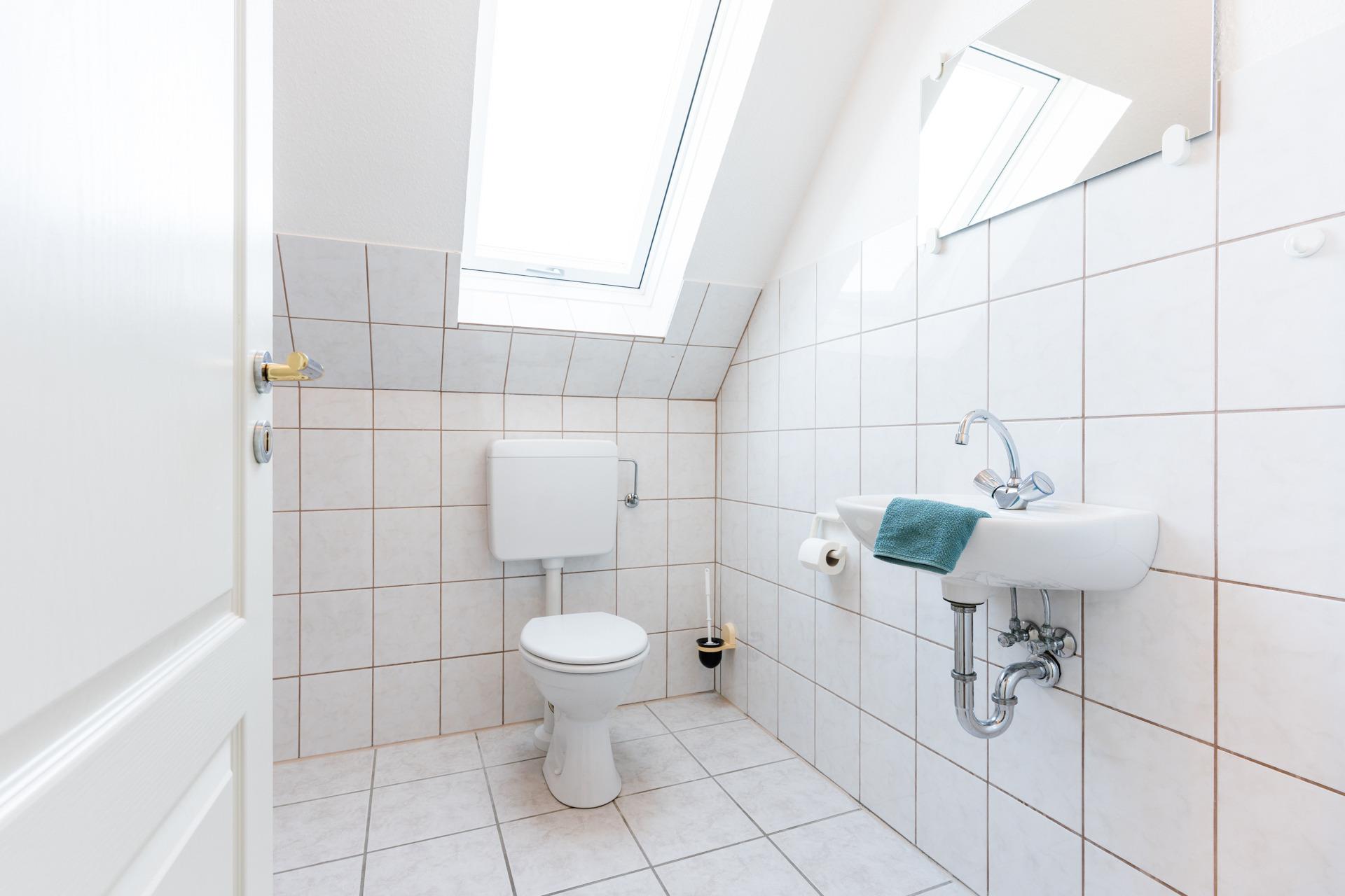 Es gibt außerdem ein Duschbad mit WC und ein separates Gäste-WC.