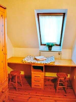Im Obergeschoss befinden sich zwei Schlafräume mit einem Doppel- und