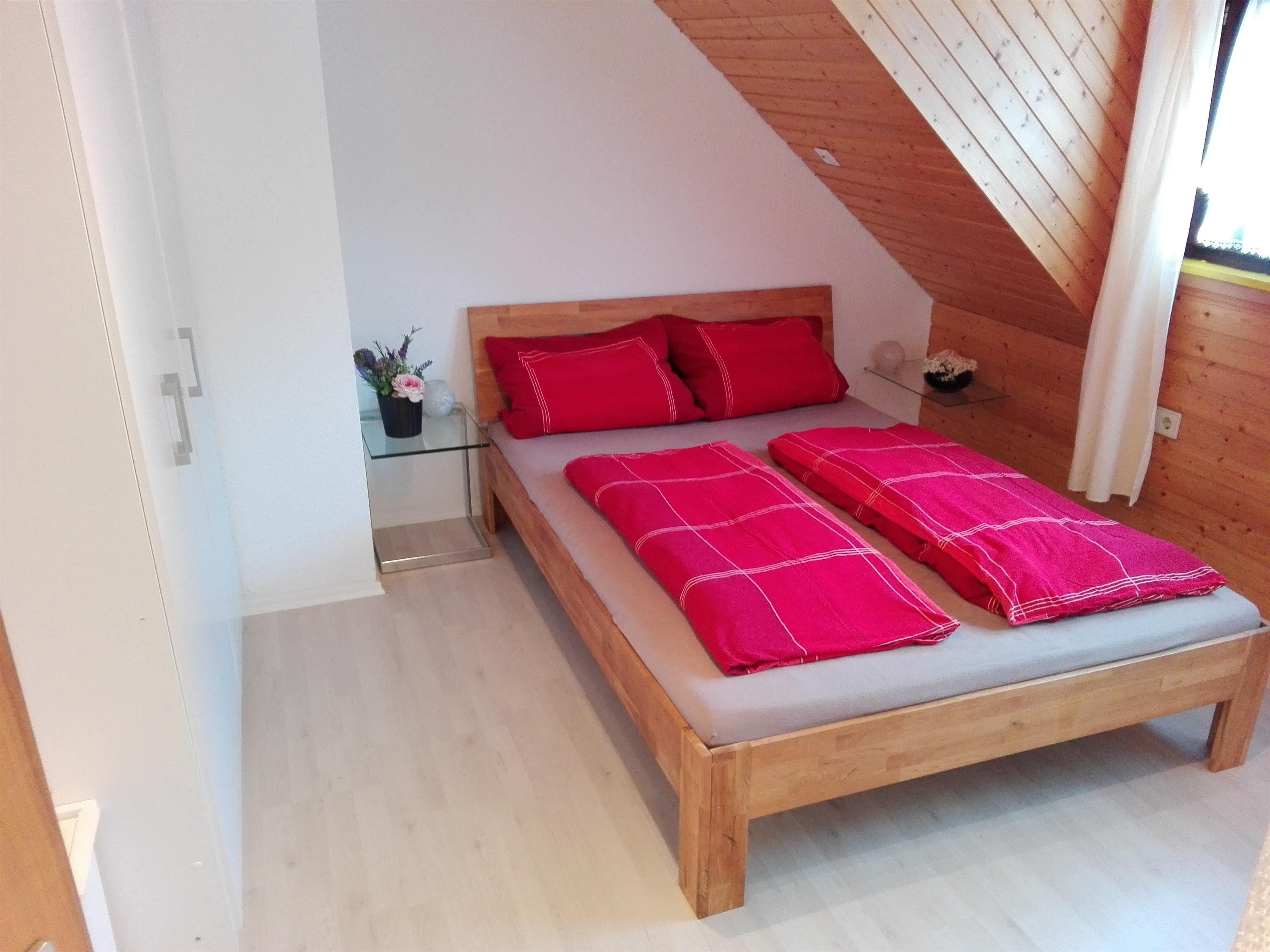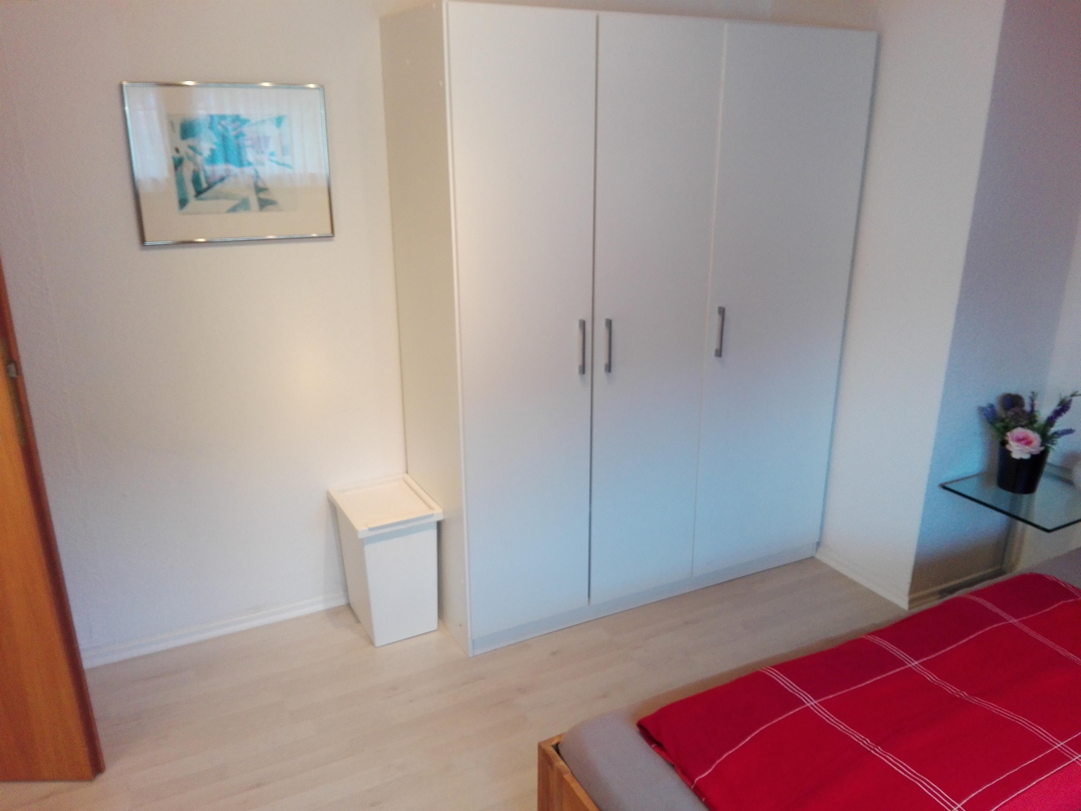 Schlafzimmer: Doppelbett (140x200), Schrank, TV (Sat), Wecker/Radio