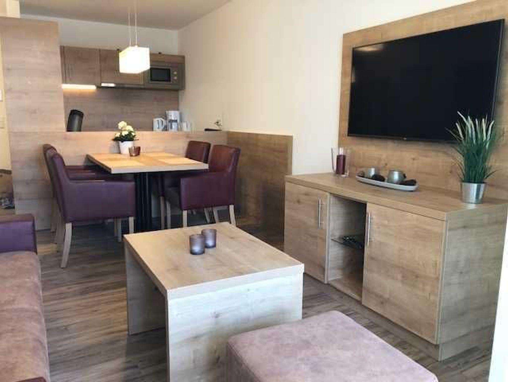 2-Zimmer-Appartement für 2-4 Personen, 1 Schlafzimmer mit Doppelbett, Wohn-Schlafraum mit Doppelbettcouch, separater Essplatz, voll ausgestatteter Küchenbereich mit Geschirrspüler, Bad mit Whirlpool und Dusche/WC, großer Balkon, SAT-TV.