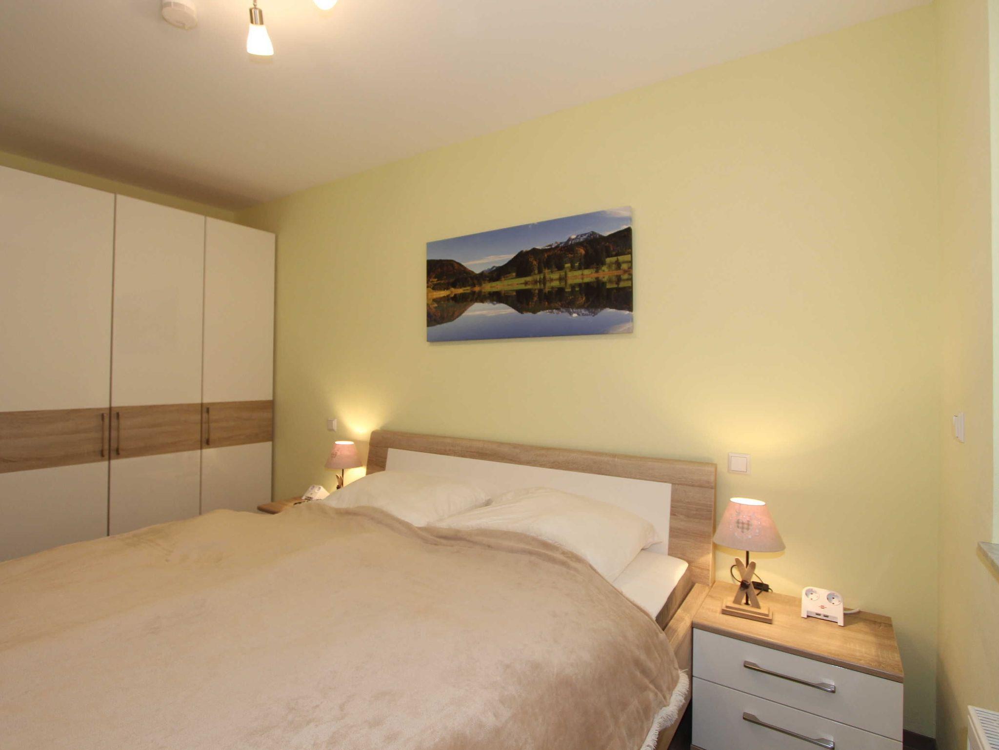 Beide Schlafzimmer sind mit großem Doppelbett (180 cm x 200 cm, durchgehende Matratzen), Kleiderschrank und SAT-Flachbildfernseher (43) eingerichtet. Die Schlafzimmer verfügen über elektrische Außenrollos.
