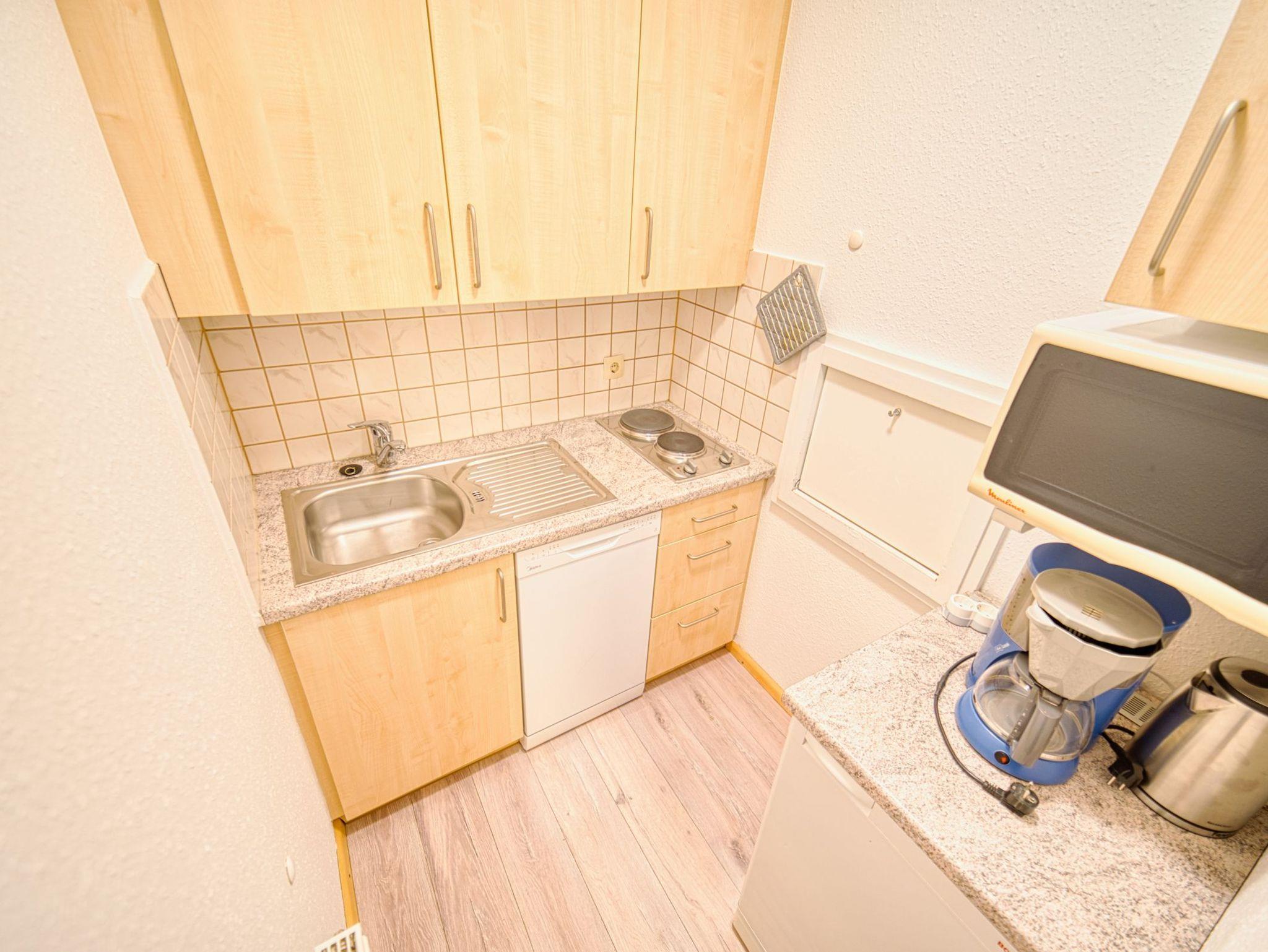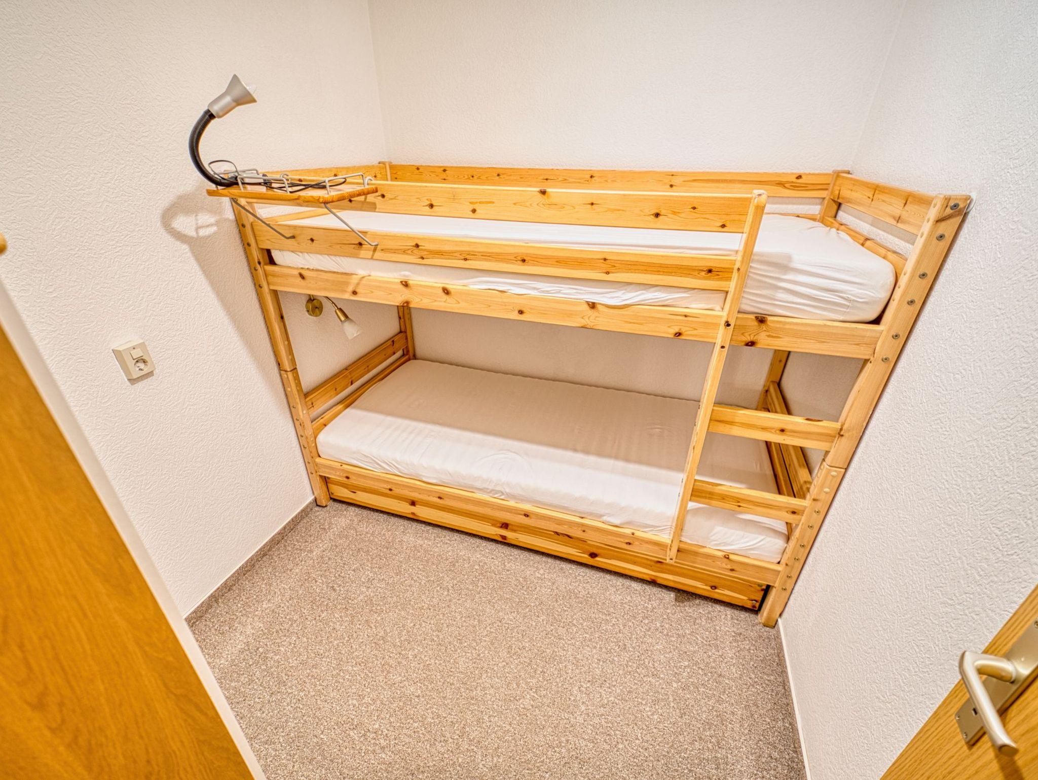 Diese Ferienwohnung befindet sich im Erdgeschoss eines Appartementhauses und bietet Platz für maximal 2 Erwachsene und 2 Kinder unter 16 Jahre. Im Kinderzimmer, abgetrennt durch eine Tür, befindet sich ein Etagenbett.