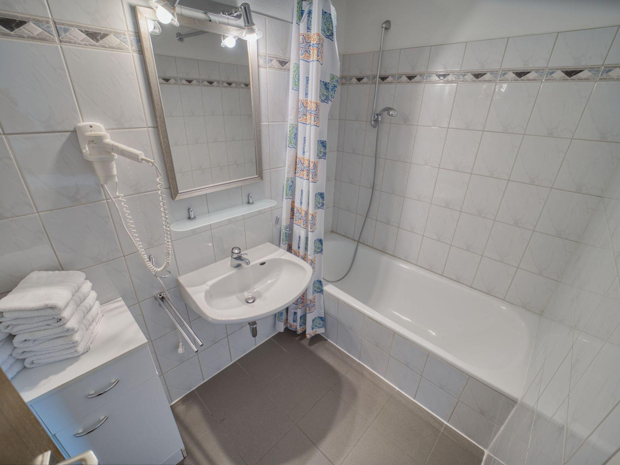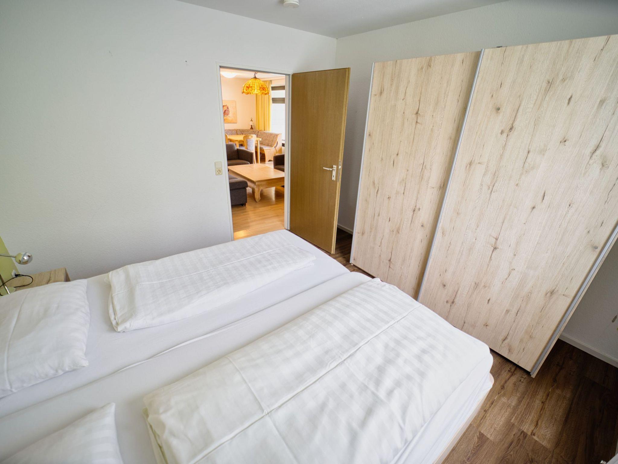 Diese Ferienwohnung befindet sich in der 3. Etage eines Appartementhauses und bietet Platz für maximal 2 Erwachsene und 2 Kinder unter 16 Jahre. Im Kinderzimmer, abgetrennt durch eine Tür, befindet sich ein Etagenbett.