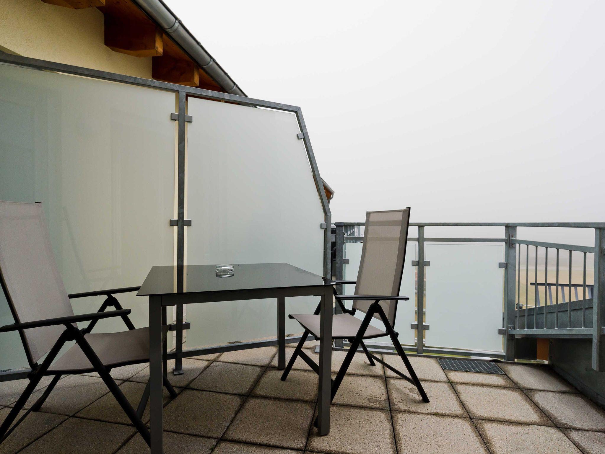 Vom Balkon der Wohnung aus haben Sie eine wunderbare Sicht auf die umliegenden Wiesen und Wälder.