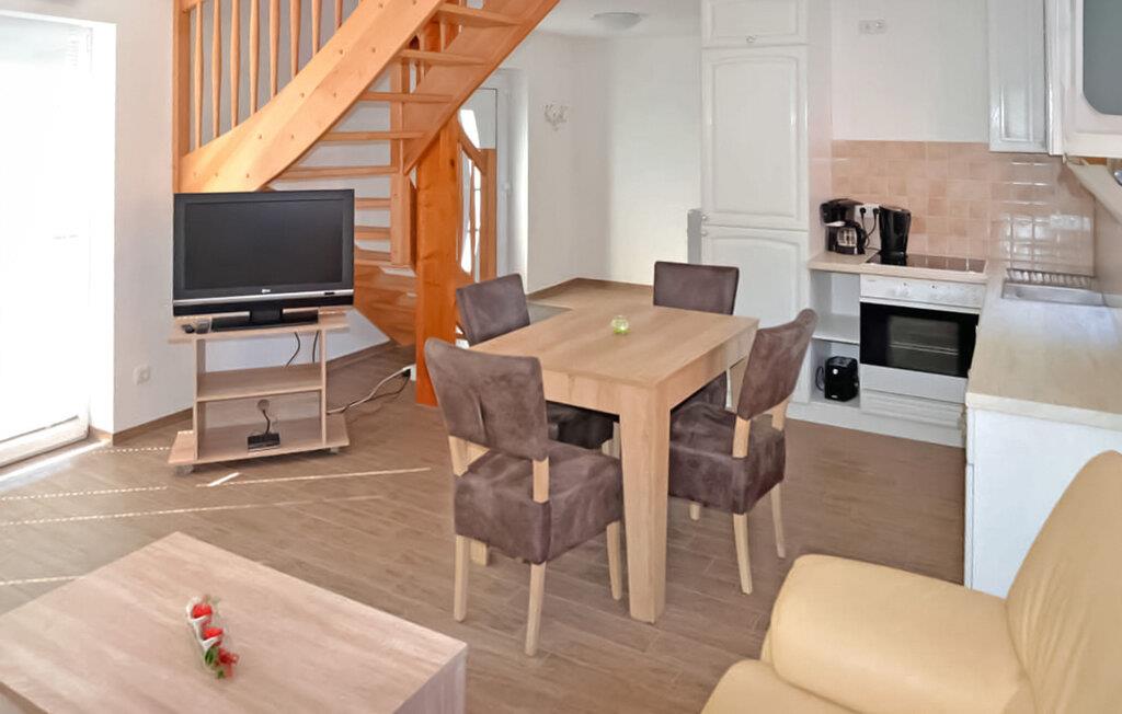 Denne ene af to ferielejligheder ligger hver for sig i et sommerhus på ejerens 3000 kvm boligejendom (nybyggeri og nyt udstyr i 2014). Det er udstyret med: stue (polstrede møbler, spiseplads, fladskærms-tv, radio), 2 soveværelser ovenpå via trapper (1 x dobbeltseng, 1 x 3 enkeltsenge), tekøkken (elkomfur med ovn, køleskab med fryser). kupé, spiseplads, opvaskemaskine, diverse køkkenmaskiner), bad/toilet, gæstetoilet på overetage, centralvarme. Lejligheden har WiFi. Barneseng og høj stol er også tilgængelige. Der er møbleret terrasse, grill, liggestole, cykelrum, trampolin og parkeringsplads til din rådighed. Conow er en lille landsby i landlige omgivelser i Feldberg-sølandskabet. Den lille by Feldberg ligger cirka 7 km væk. Der er ca. 800 m til Carwitzersøen med bade- og fiskemuligheder.