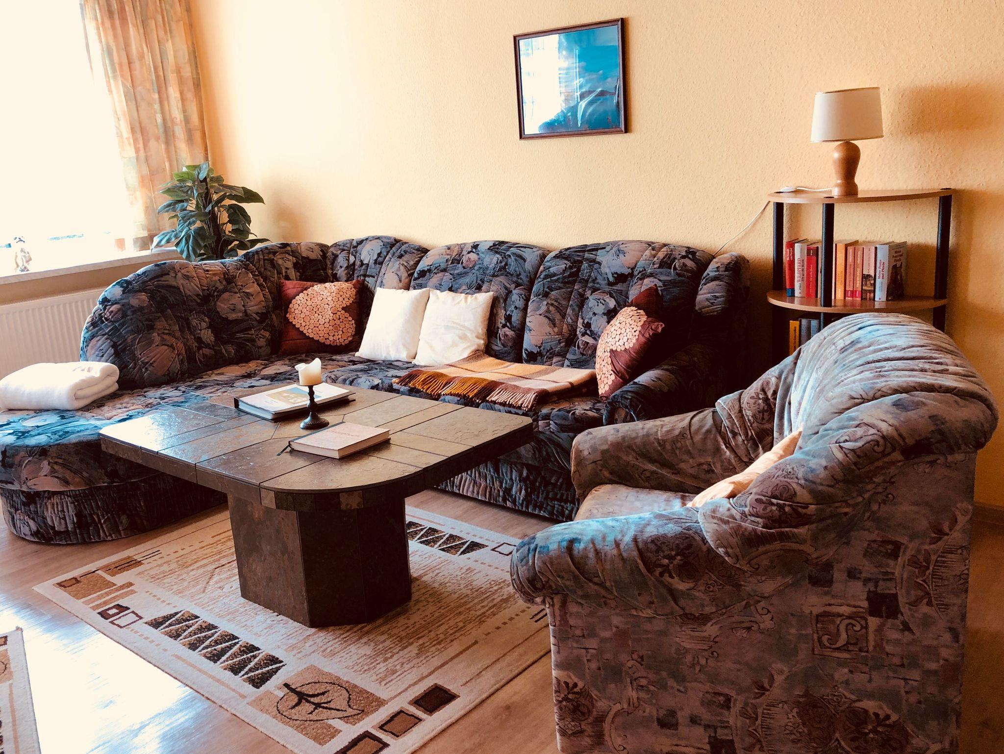 Wir bieten Ihnen unsere 80 qm große Ferienwohnung mit 2 Schlafzimmern und einem großen Wohnzimmer mit gemütlicher Sitzecke, separatem Essbereich und Ausziehcouch. Für die ganz kleinen Gäste bis zu 3 Jahren haben wir ein extra Kinderbett. Es ist genügend Platz, Gläser und Geschirr für 6 Personen, so dass Sie mit der ganzen Familie, auch in mehreren Generationen Platz bei uns finden. Aber auch für 2 Personen ist unsere Ferienwohnung ideal, falls Sie getrennte Schlafzimmer bevorzugen.