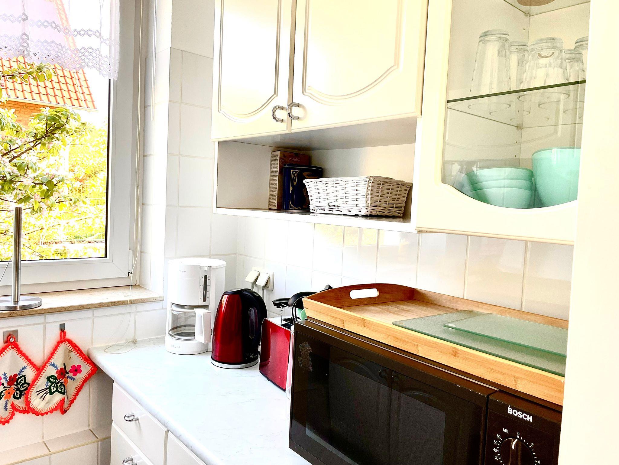 In unserer komplett ausgestatteten, separaten Küche finden Sie alles, was Sie zum Kochen und Backen benötigen, falls Sie im Urlaub Lust dazu haben.