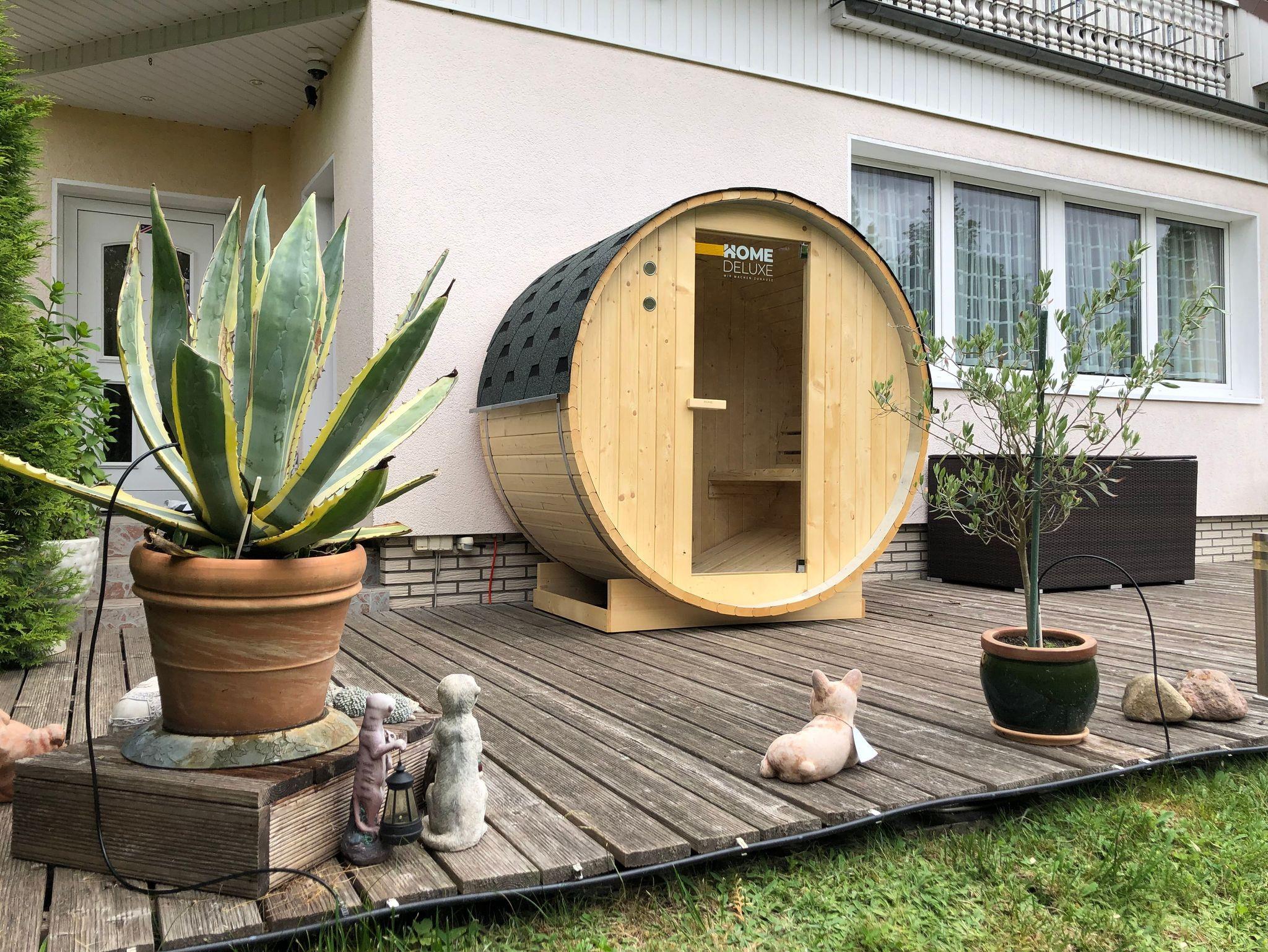 Unsere neuste Errungenschaft ist eine Fass-Sauna für 2 Personen, in der Sie sich von den Wanderungen oder Fahrradtouren erholen können.
