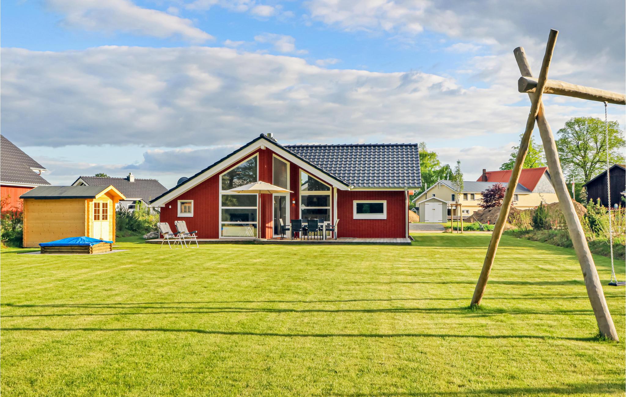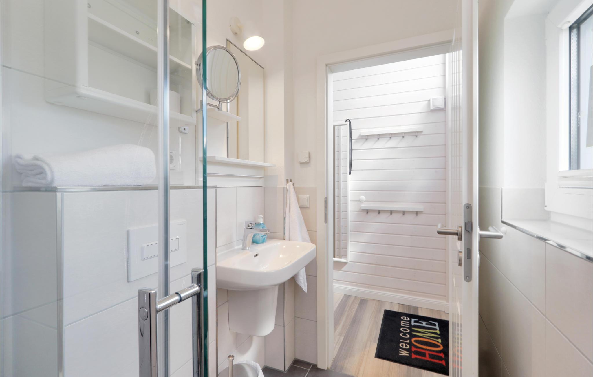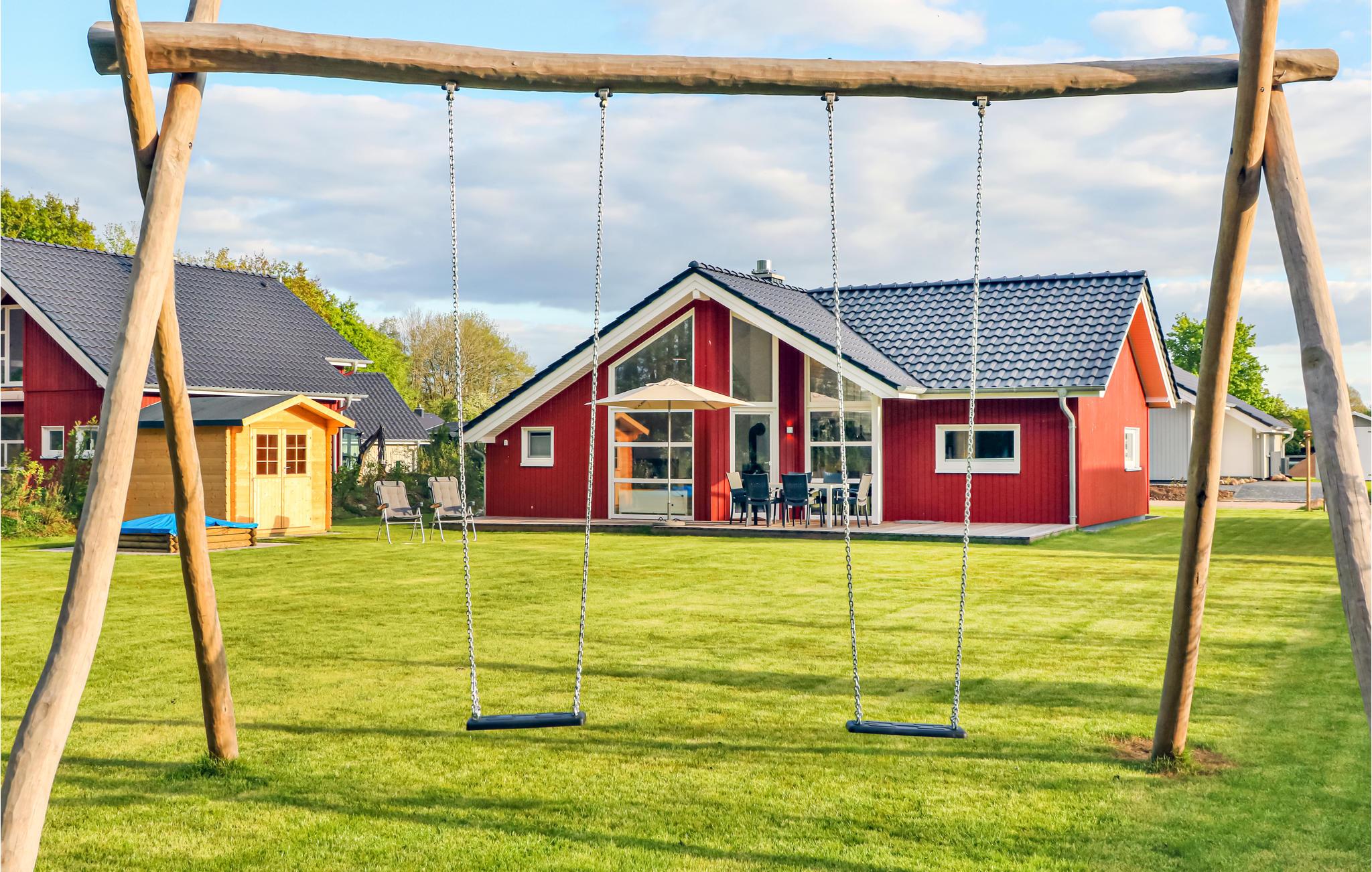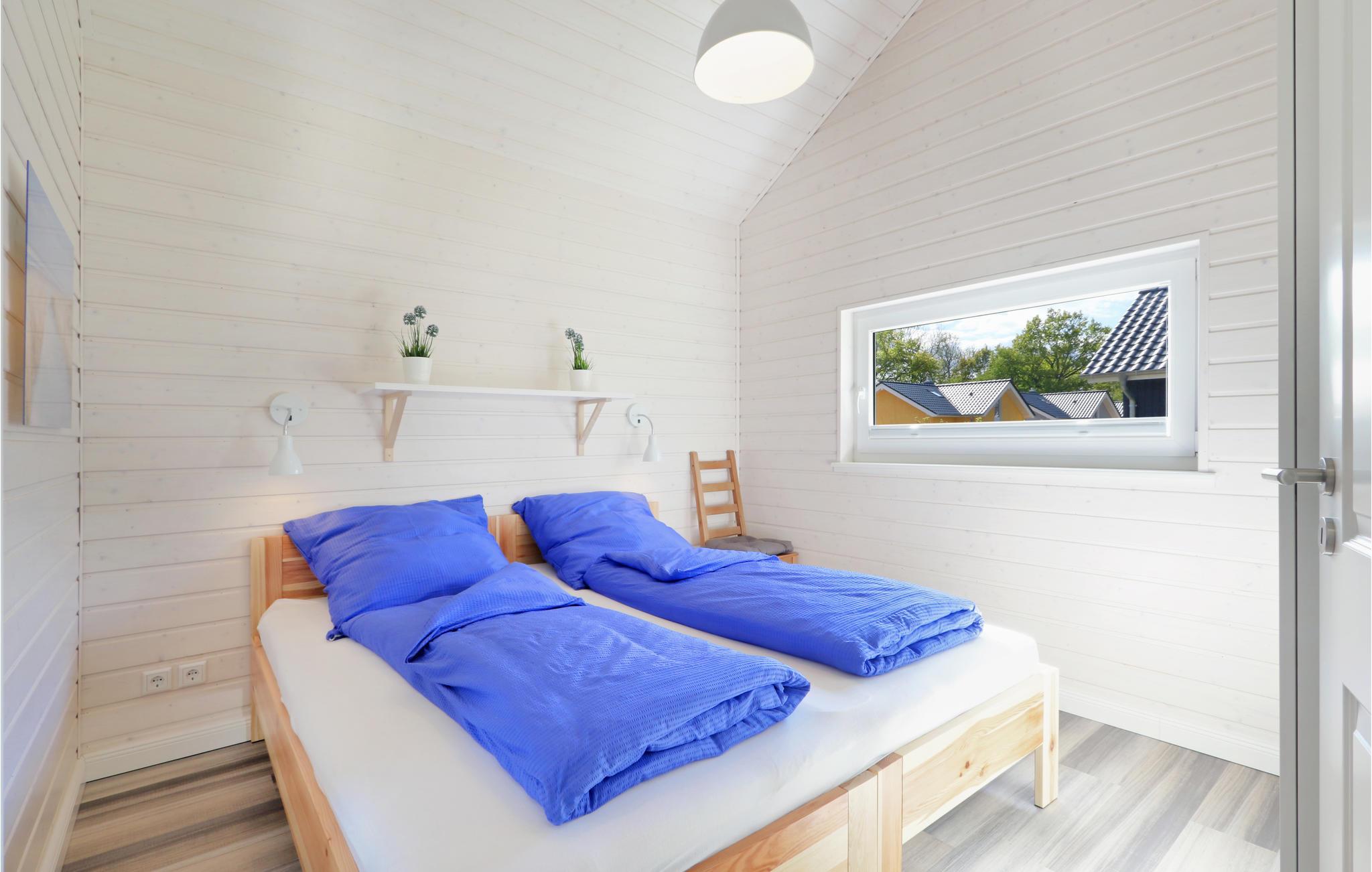 Dette moderne feriehus af træ 'Seezauber' giver god plads til op til otte voksne. Her er loft til kip og store vinduer, der giver en rummelig og lys atmodsfære. Den maritime indretning i lyse farver bidrager også til den hyggelige stemning.