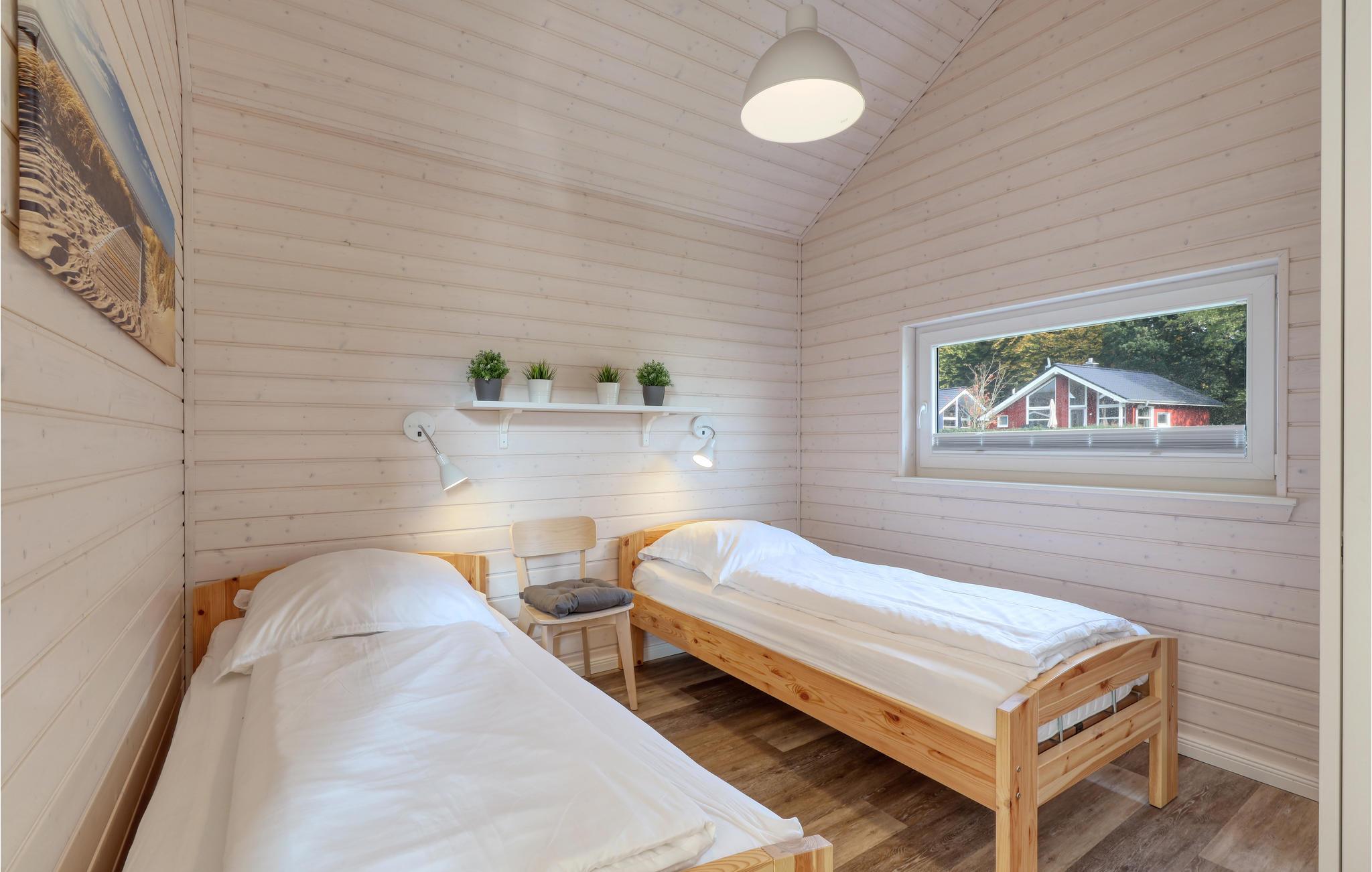 Det moderne træhus gør med sin tiltalende skandinaviske stil et godt indtryk og har plads til 6 personer, med en daybed i det tredje soveværelse. Husets egen sauna indbyder til afslapning. Sæt jer til rette sammen om aftenen ved brændeovnen, spil et brætspil, planlæg aktiviteterne for den næste dag og lyt til flammernes knitren.
