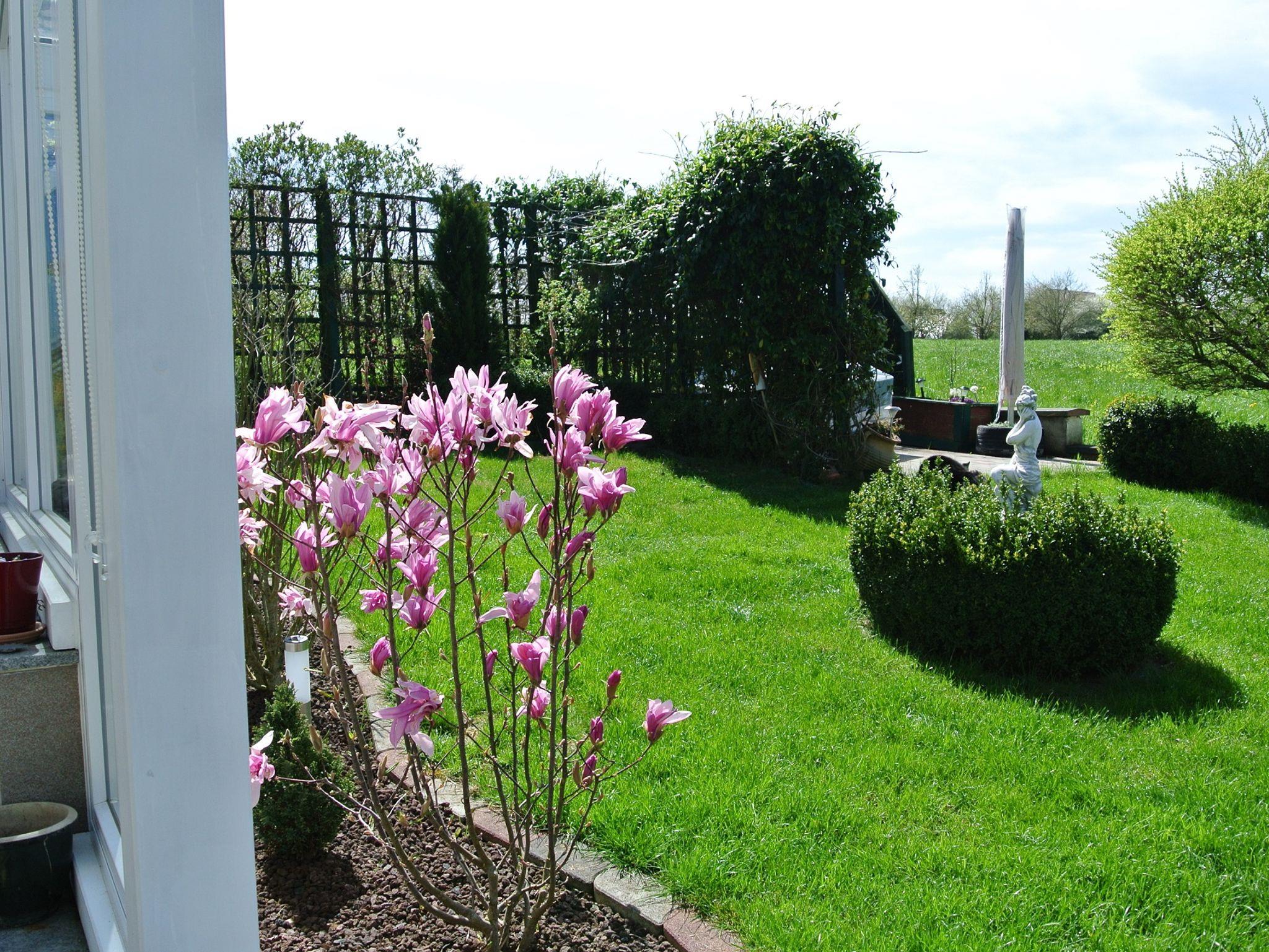 Unsere Wohnung liegt im 1. OG eines zwei Familienhaus und besteht aus drei Zimmern, einem Flur, Bad mit Wanne und Dusche, Küche mit Essecke. Die Wohnung ist 102 qm groß und hat einen Laminat-Fußboden bzw. das Bad ist gefliest. Unser Haus ist ein Nichtraucherhaus, vor der Tür befindet sich aber eine überdachte Raucherecke. Unser Haus und Garten sind mit kostenfreiem WLAN ausgestattet. Das gemütliche Wohnzimmer verfügt über einen 142 cm großen Fernseher, einen Blu-Ray-Player und eine Dolby-Surround-Anlage. Die Couch kann als Schlafmöglichkeit verwendet werden. Beide Schlafräume sind mit jeweils einem Doppelbett ausgestattet. Das geräumige Badezimmer mit Badewanne und ebenerdiger Dusche rundet das Gesamtbild ab. Das WC ist 5 cm höher als normal und wird von großen und älteren Menschen gerne angenommen. Im Badezimmer befindet sich auch eine Waschmaschine. Die Wohnküche mit Cerankochfeld, Kühlschrank mit Gefrierfach (extra Tür), Dunstabzugshaube, einem Kinderstuhl, Spülmaschine und einem Tisch mit 6 Stühlen lädt zu gemütlichen Kochabenden ein.