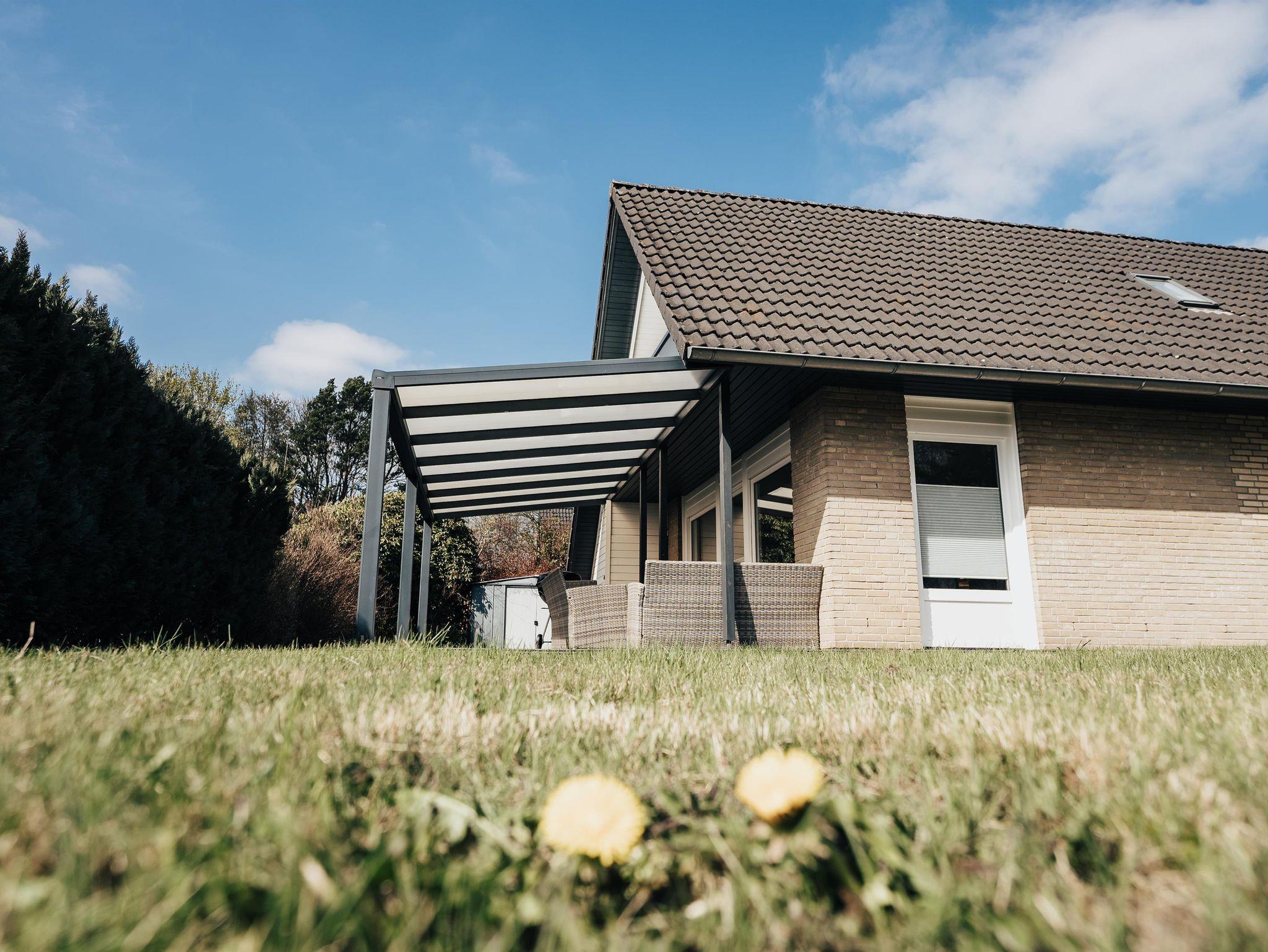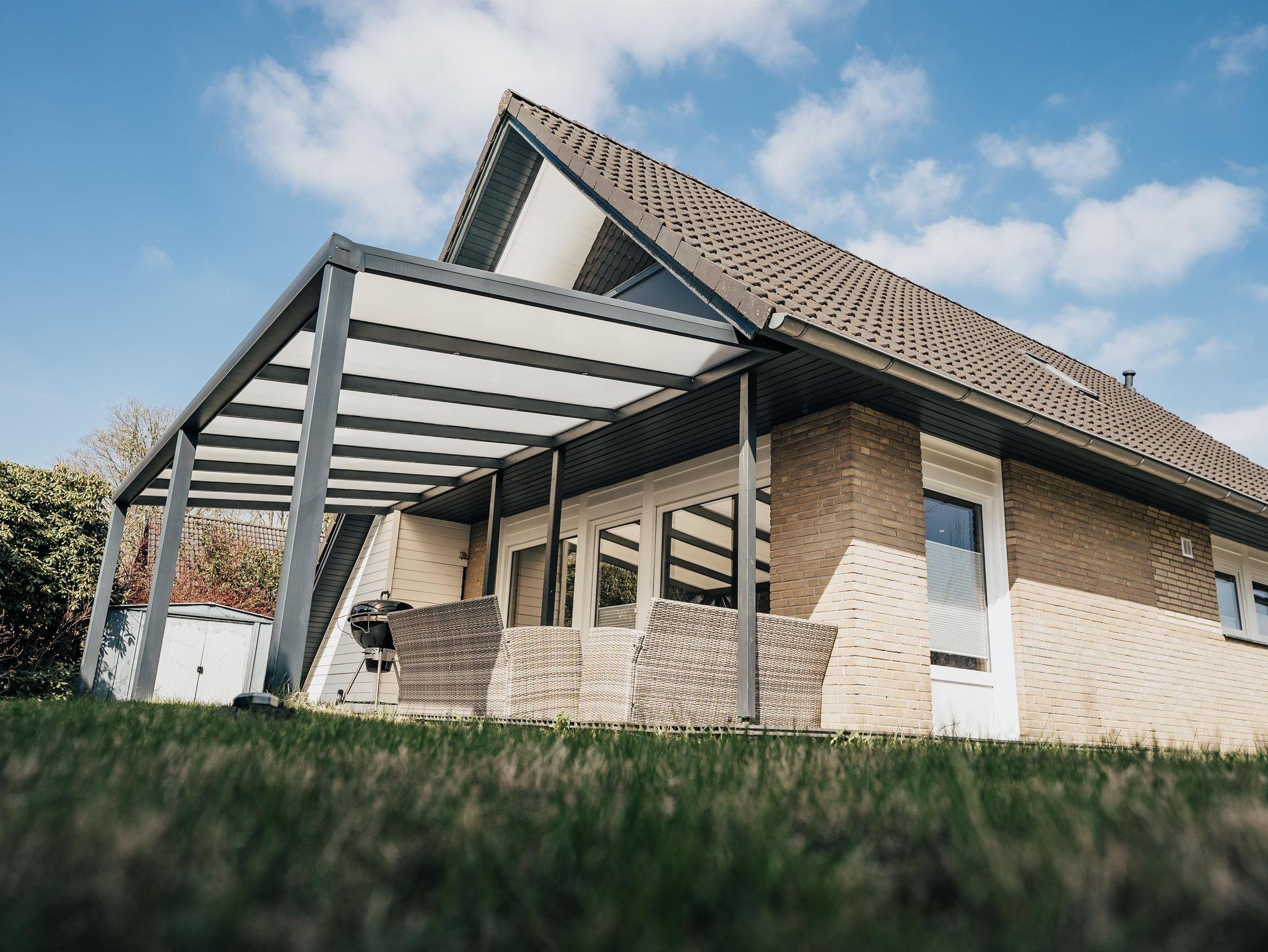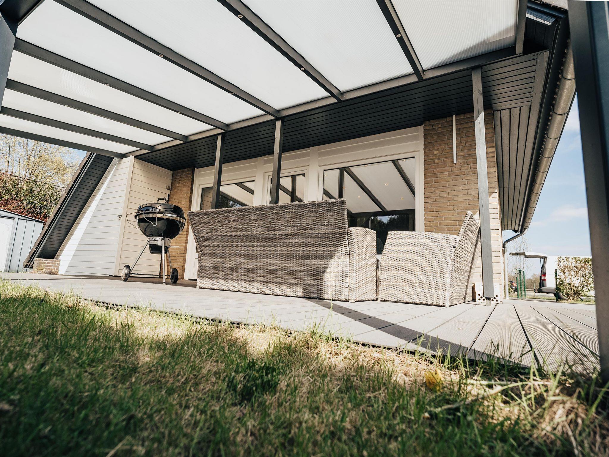 Die überdachte Terrasse, welche mit Gartenmöbeln ausgestattet ist, lädt bei jedem Wetter zum entspannten Verweilen ein.