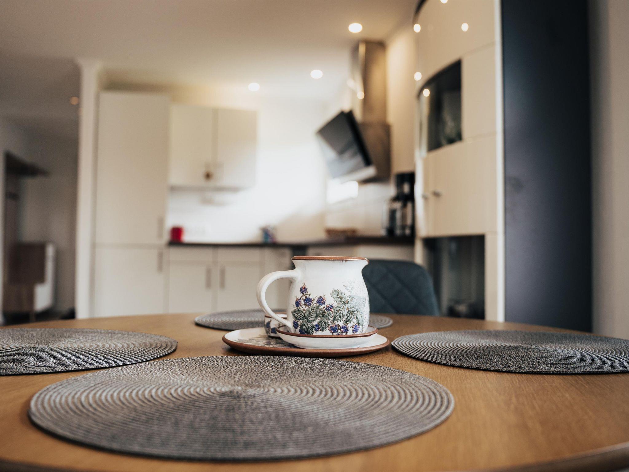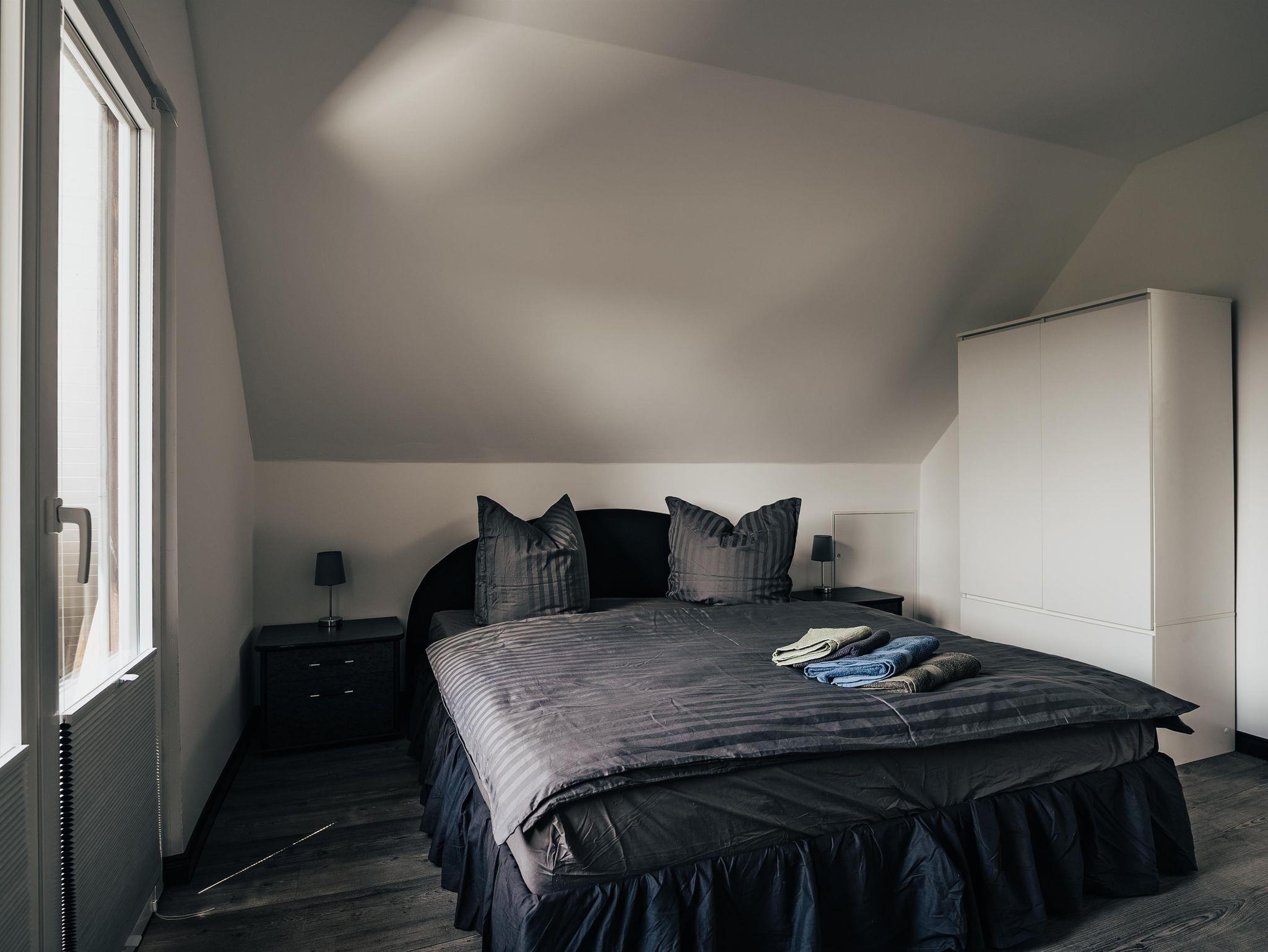 Das hell und modern eingerichtete Ferienhaus bietet ausreichend Platz für 4 Personen. Es verfügt im Erdgeschoss über eine komplett ausgestattete Wohnküche mit Essgelegenheit und ein Bad mit Dusche und WC. Im ersten Stock befinden sich ein Schlafzimmer mit Doppelbett und zusätzlichem Balkon, ein Schlafzimmer mit zwei Einzelbetten sowie ein separates WC.