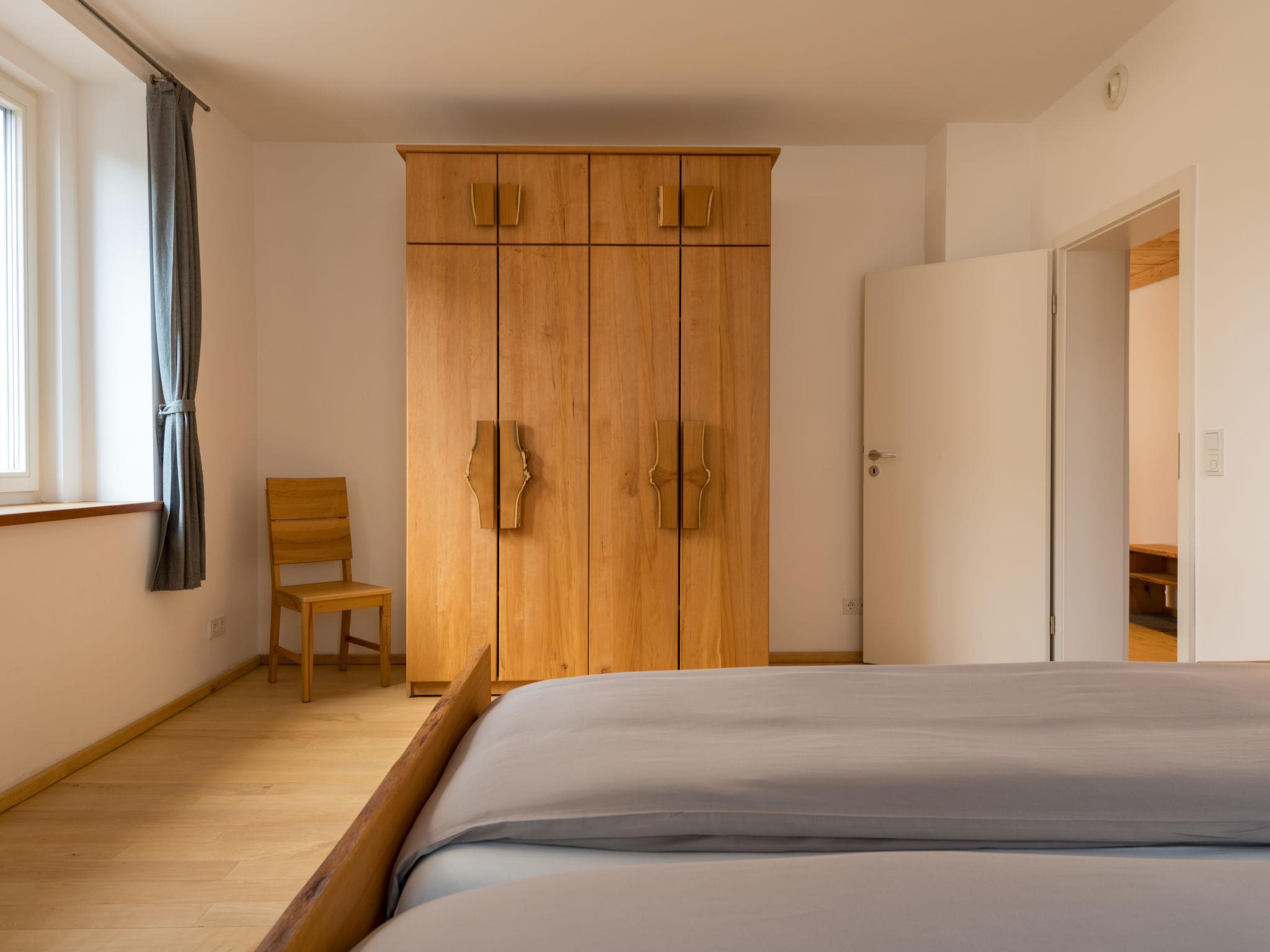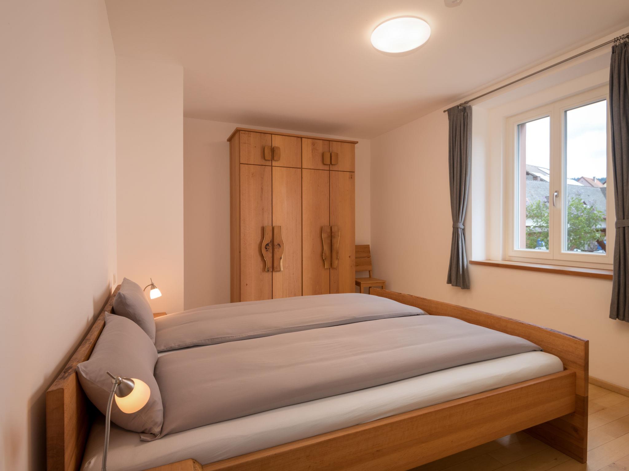 5-room apartment 180 m2 on 1st floor. Bright, fully renovated in 2018, modern furnishings: large living/dining room with dining table and cable TV (flat screen). Exit to the balcony. 4 rooms, each room with 1 double bed (2 x 90 cm, length 220 cm). Open kitchen (oven, dishwasher, 4 induction hot plates, toaster, kettle, microwave, electric coffee machine). Shower/WC, bath/shower/WC. Heating. Solar power. Balcony. Balcony furniture. Facilities: Internet (WiFi, free). Parking (roofed, 1 car). Please note: non-smokers only. Smoke alarm. Bookings accepted for holiday purposes only.
