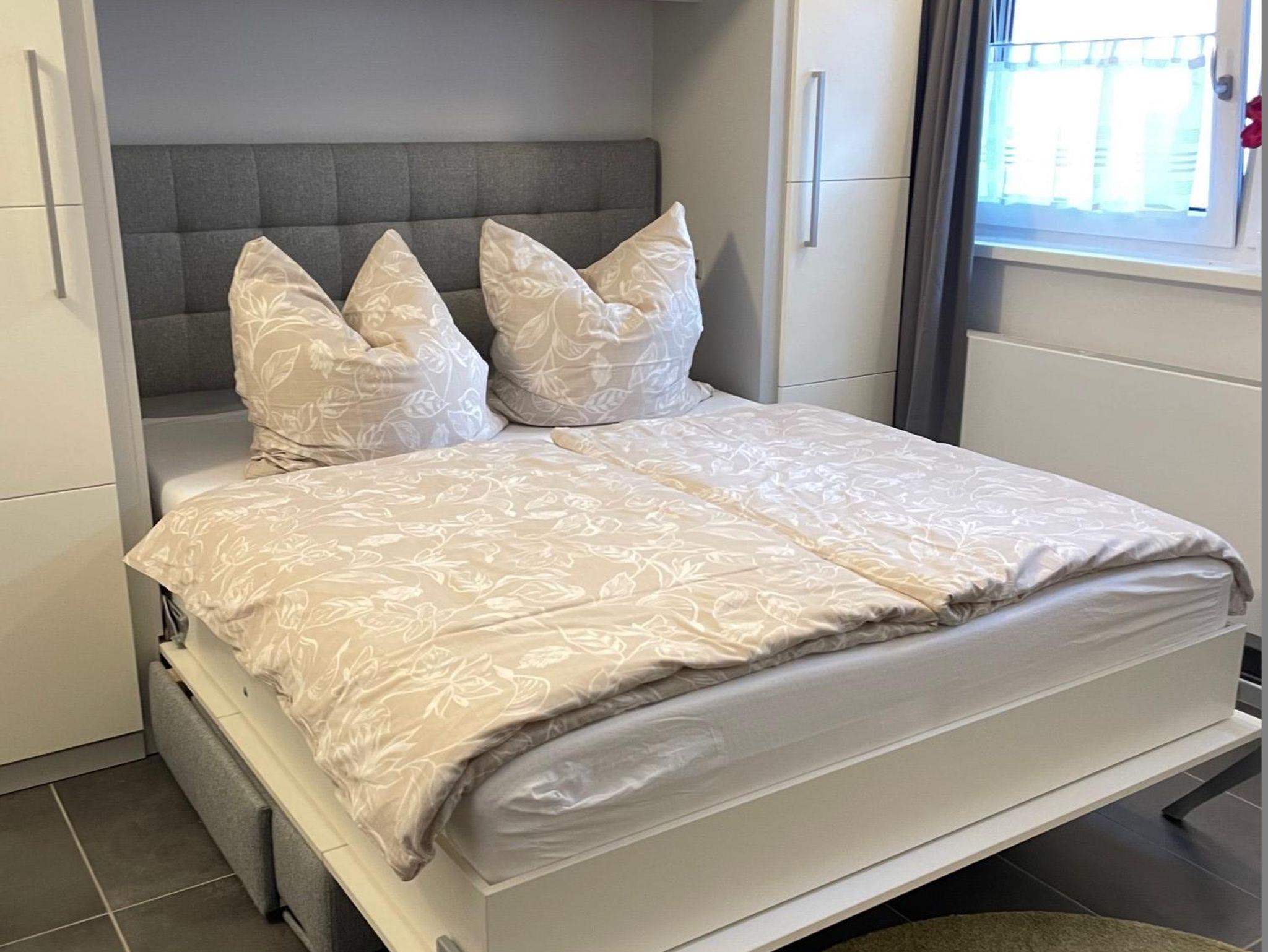 Ihr Feriendomizil verfügt über einen kombinierten Küchen- Wohn- und Schlafraum und ein Tageslichtbad. Im Einzelnen bestehend aus Einbauküche, Essecke und Doppelbett, W- LAN und Satellitenfernsehen, einem separaten Bad mit Dusche , WC, WB und Urinal. Es ist genug Platz für zwei Erwachsene.